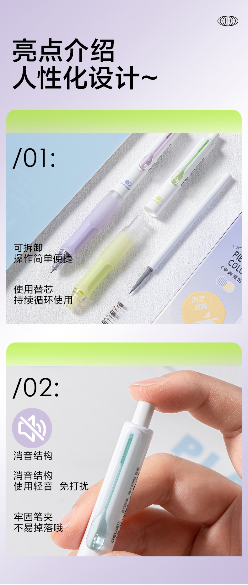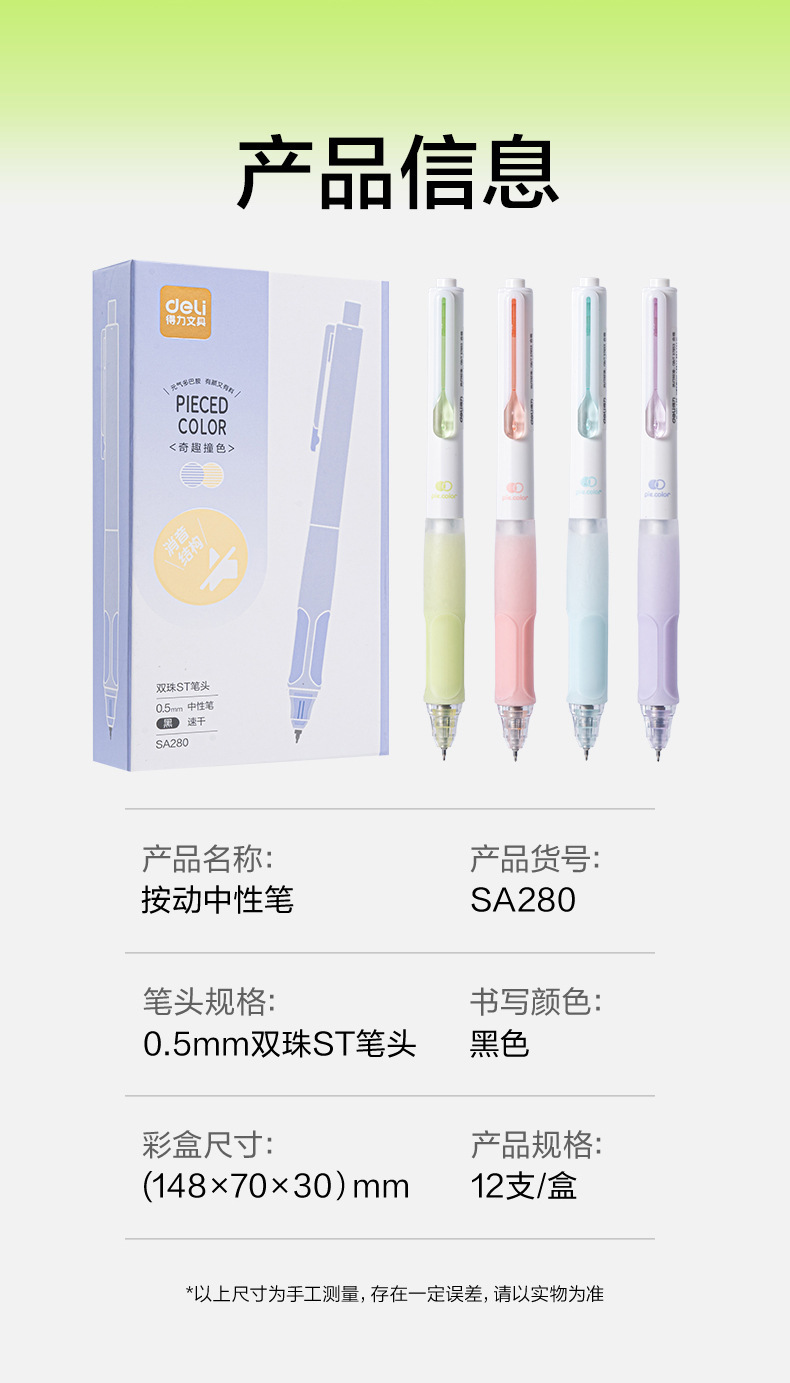 델리 젤펜 퀴어 컬러 시리즈 고급스러운 디자인의 푸쉬형 젤펜 초등학생용 소프트 그립 ST 팁 0.5mm 워터펜