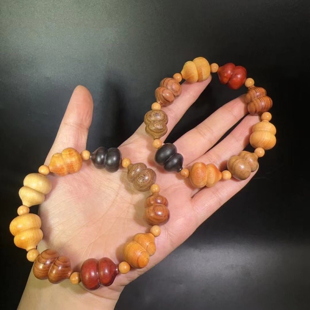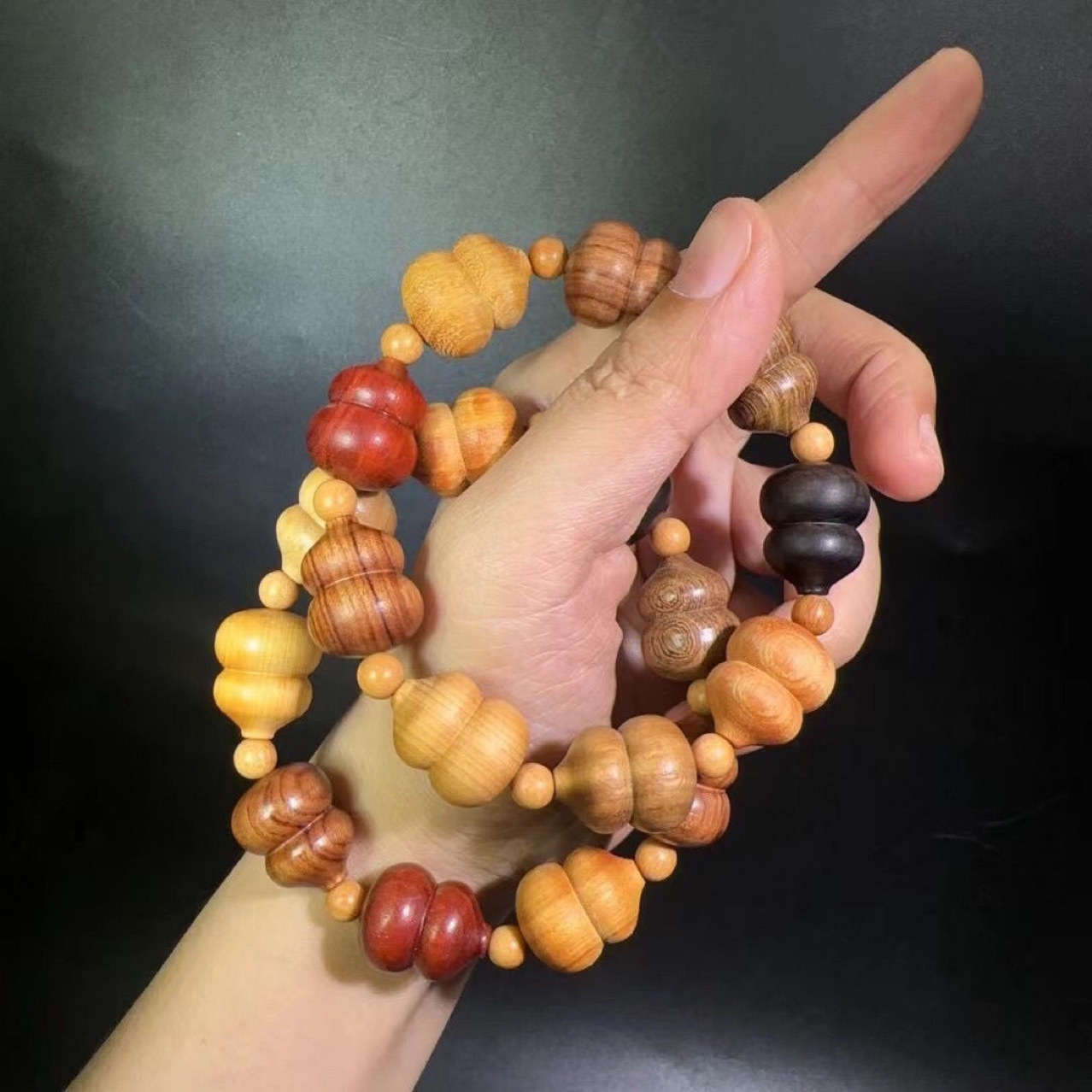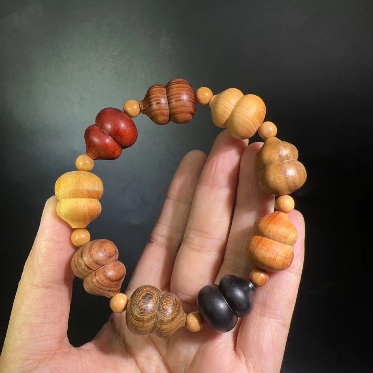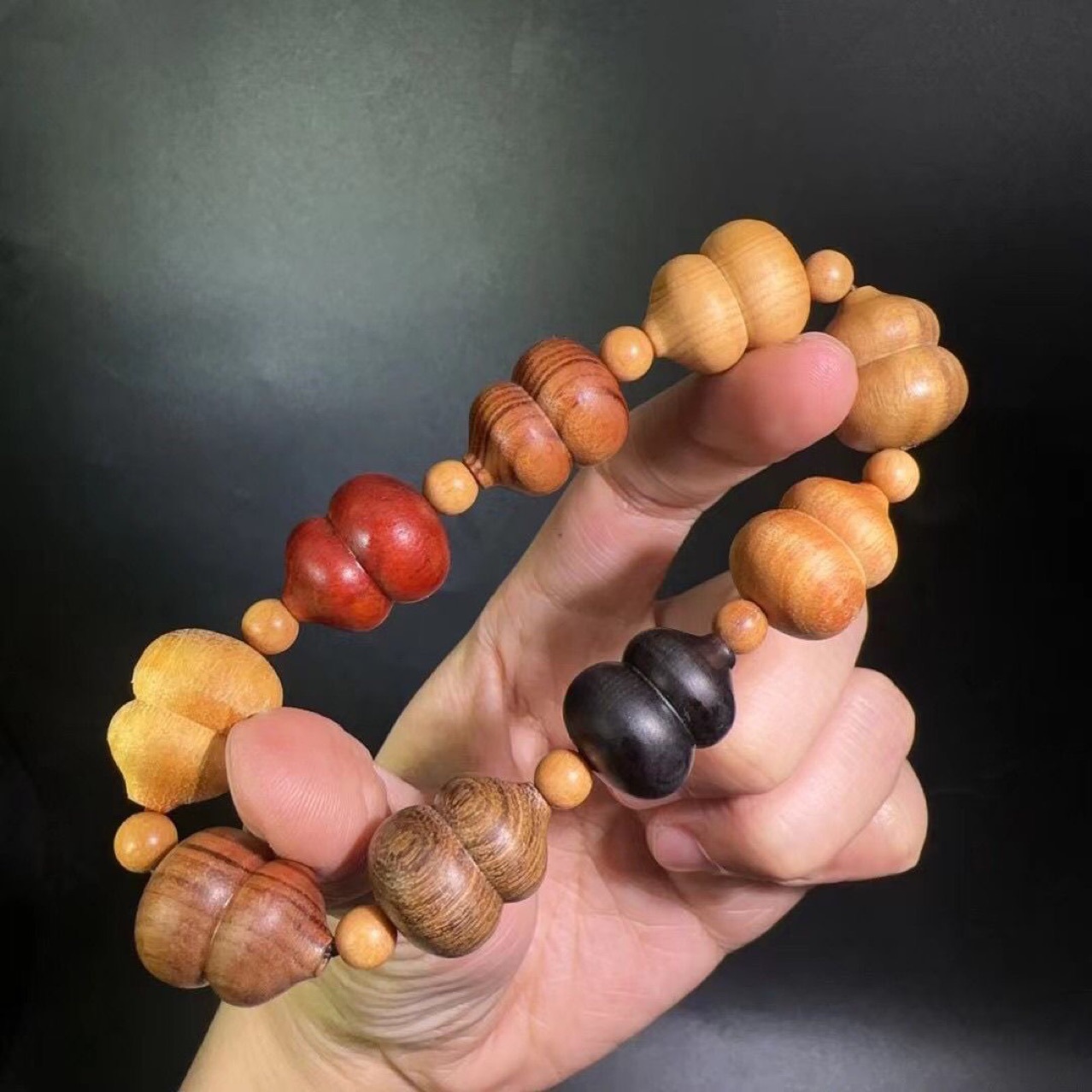 • 九福临门葫芦手链崖柏木檀金丝檀紫檀木黑檀木檀手串