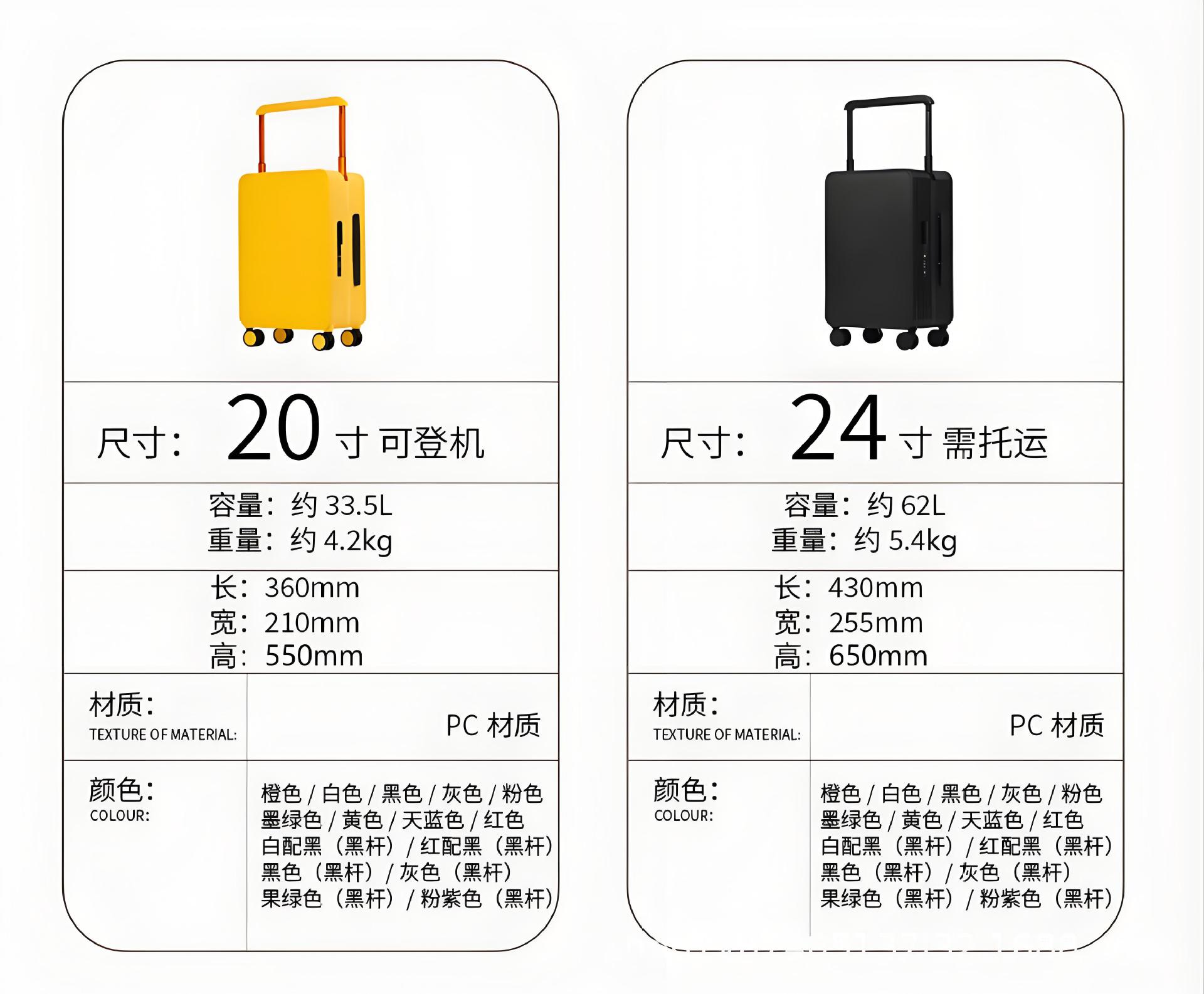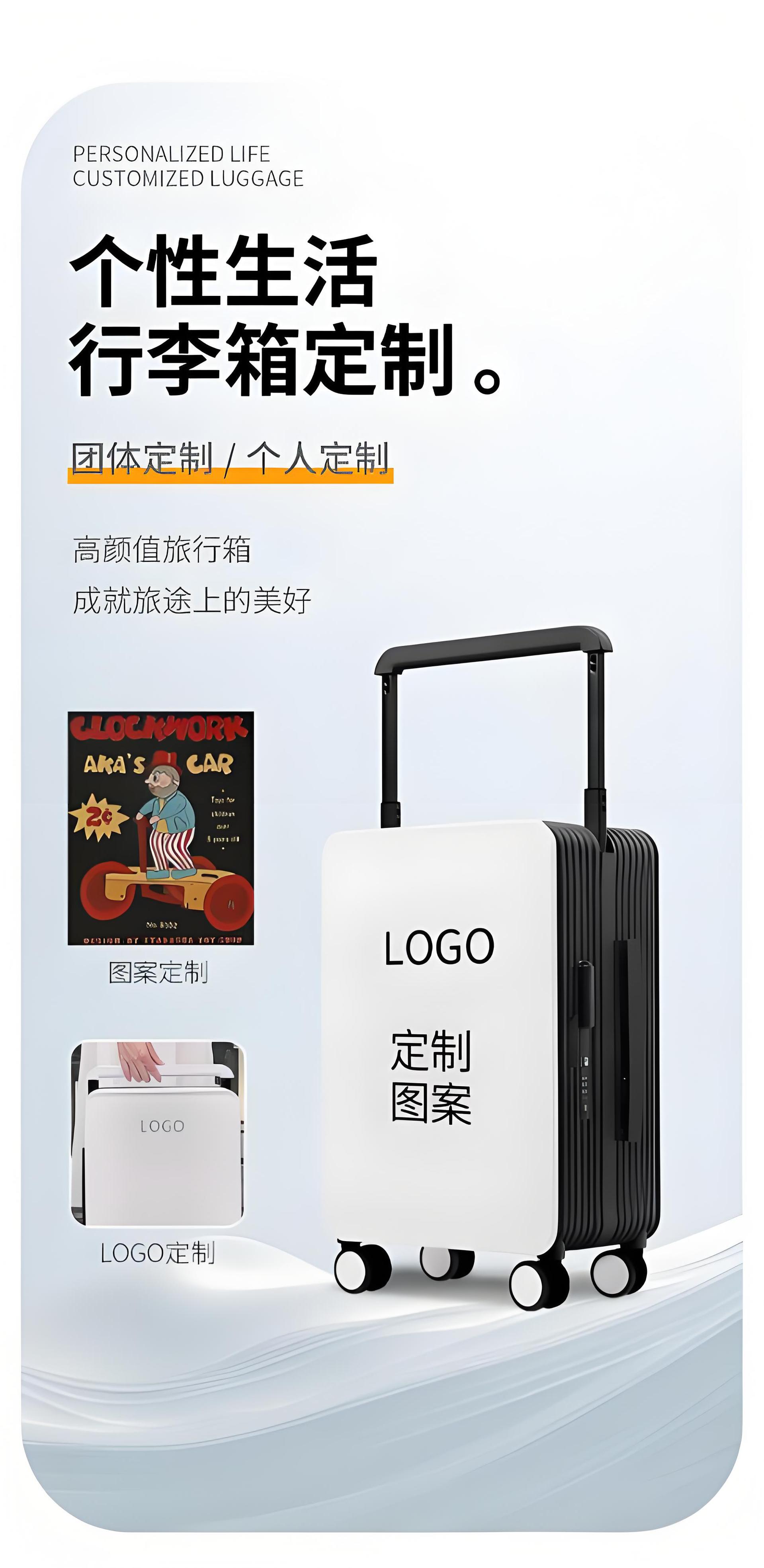 3.本厂承接各种定制箱包,欢迎咨询,材质目前有PP,PC,ABS+PC,铝框,皮质;支持各色图案,Logo定制,提供免费设计