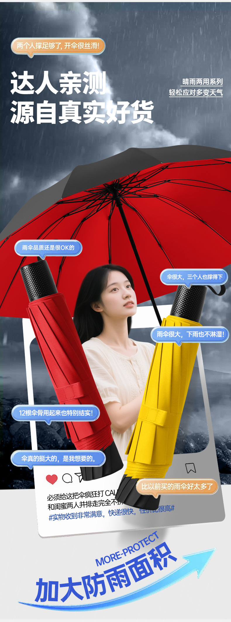 남녀공용 초대형 우산, 2인용 및 3인용 초대형 접이식 우산, 비가 오나 눈이 오나, 비닐 자외선 차단제, 대형 파라솔