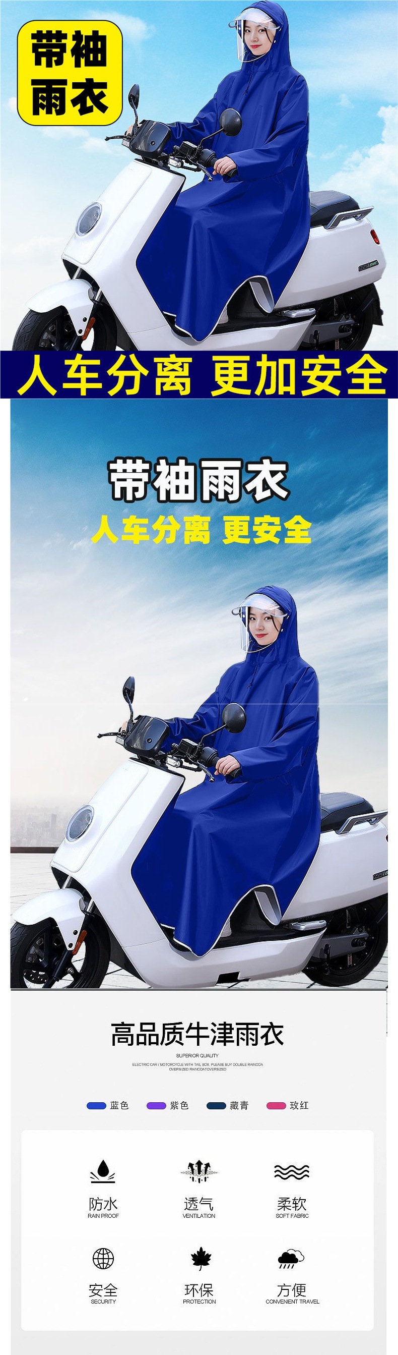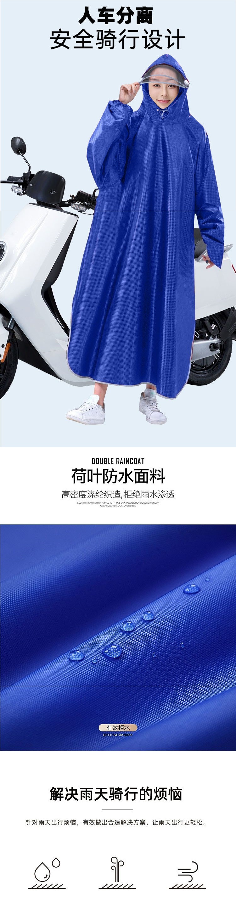 소매가 있는 비옷, 전기 자전거, 오토바이 판초, 두꺼운 싱글 성인 남녀 배터리 자전거 라이딩 비옷스토어 가기