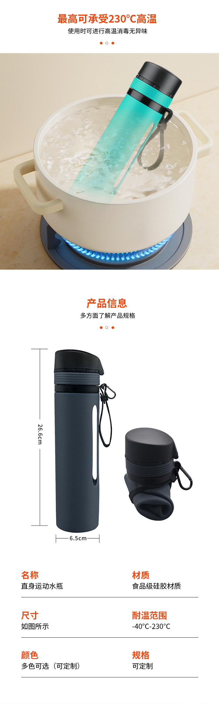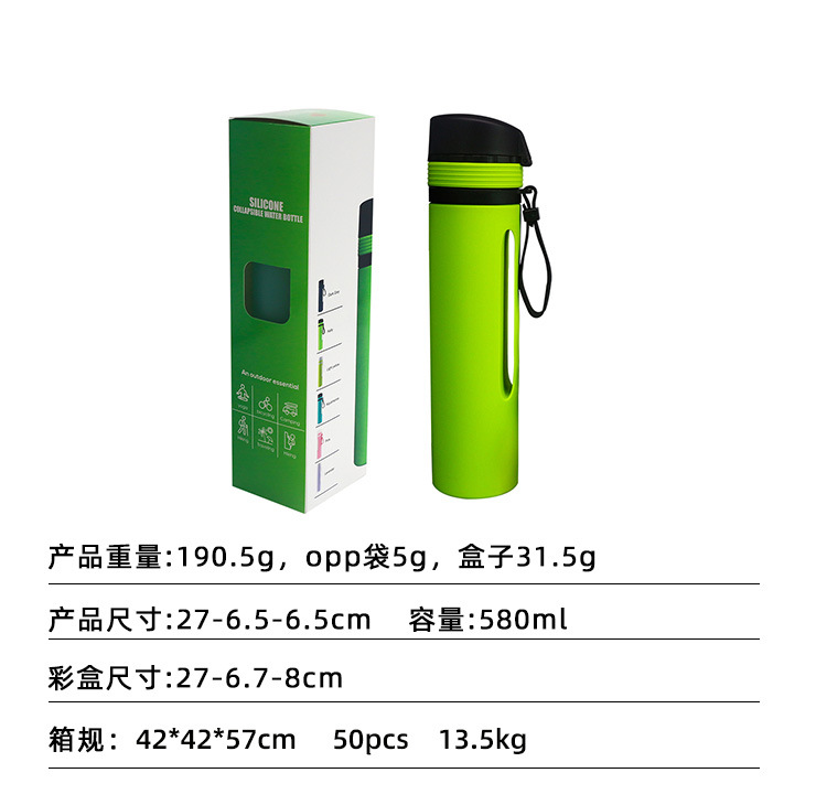 국경 간 접이식 실리콘 물병 식품 등급 등산 사이클링 텀블러 고온 방지 야외 스포츠 실리콘 물컵스토어 가기