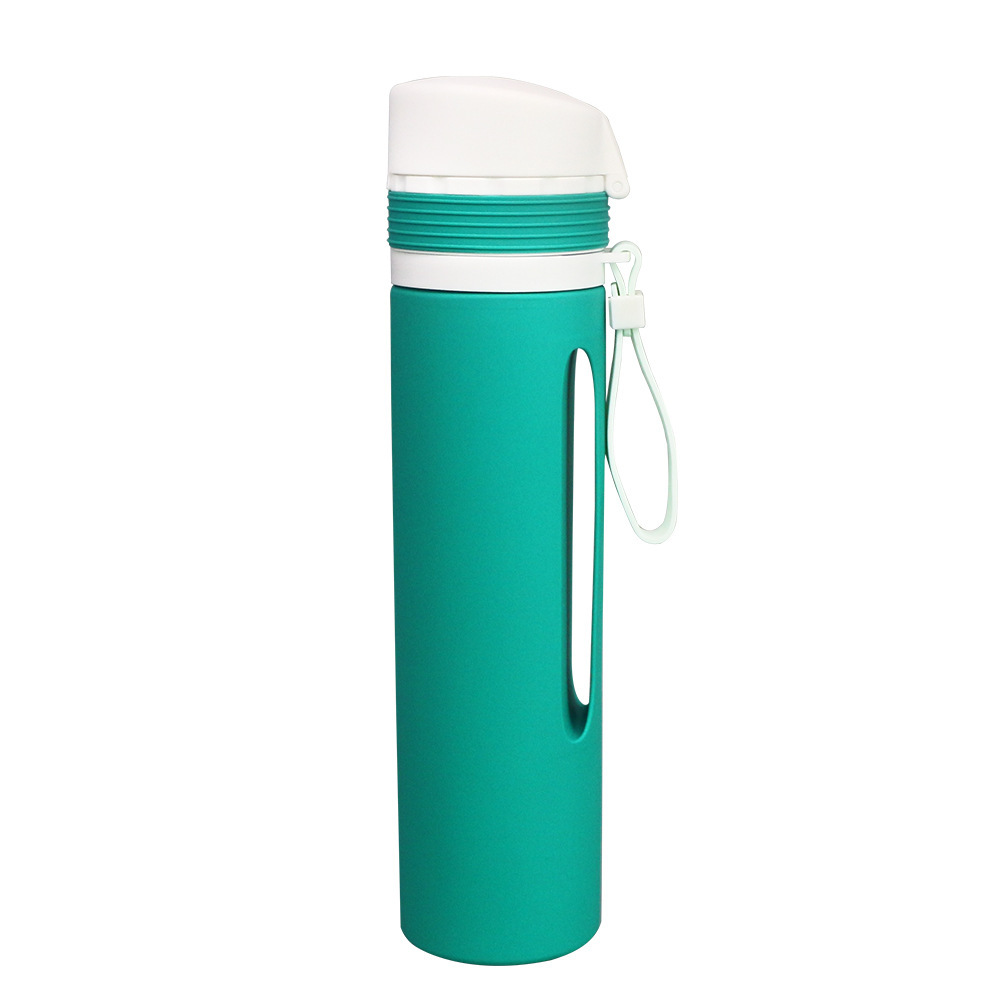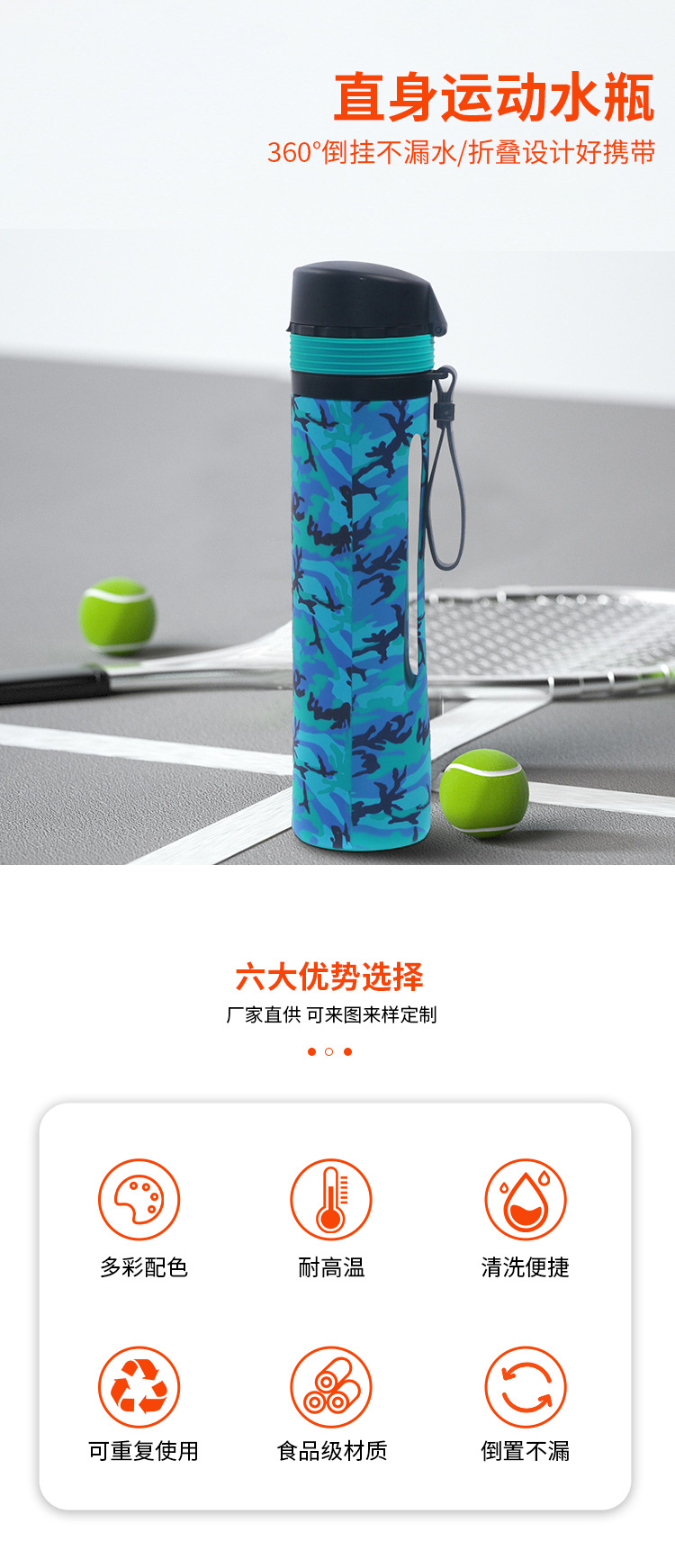 국경 간 접이식 실리콘 물병 식품 등급 등산 사이클링 텀블러 고온 방지 야외 스포츠 실리콘 물컵