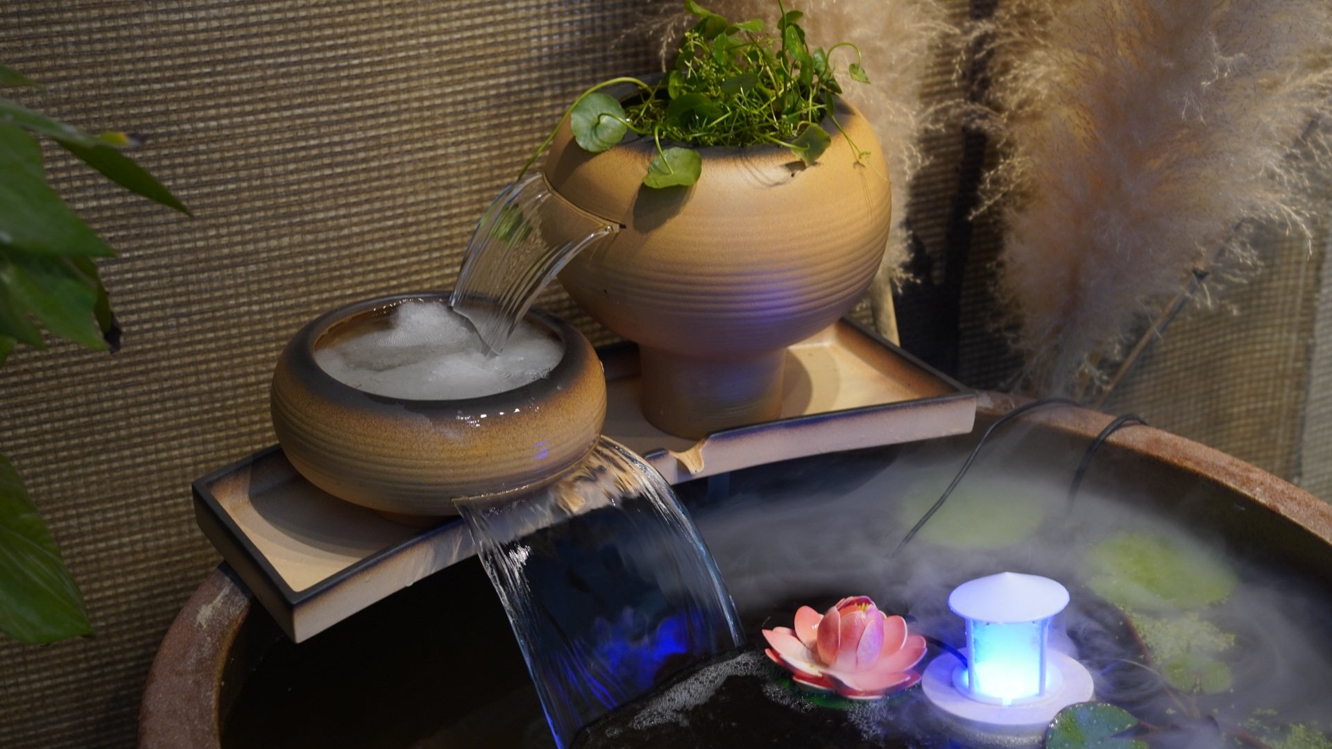 고대 방식의 물고기 양식 폭포 항아리, 흐르는 물 조경, 필터링 및 산소 공급, 녹색 식물, 마이크로 조경, 생태 탱크, 흐르는 물 장식품