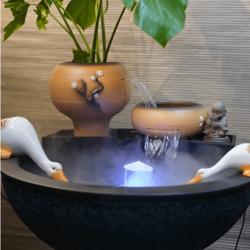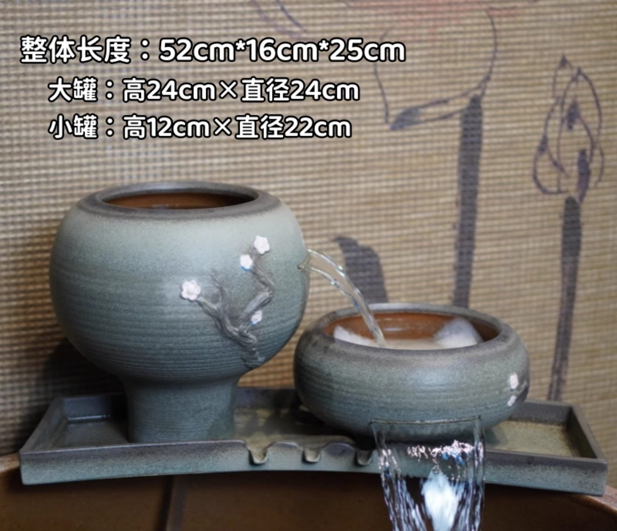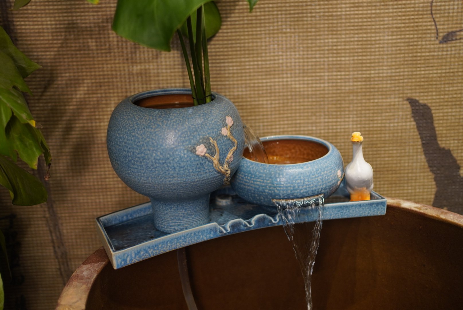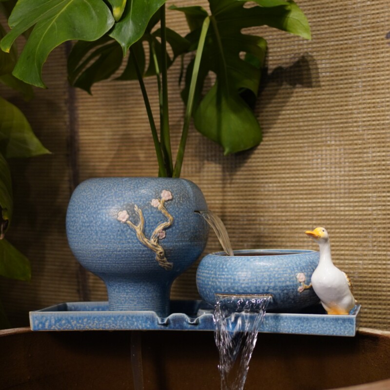 • [청백가마 유약] 폭포항아리 + 워터펌프 + 세라믹 접시 (직경 45-70cm 수조에 적합) 세라믹 오리 장식품 + 필터면 + 스테인레스 필터 포함