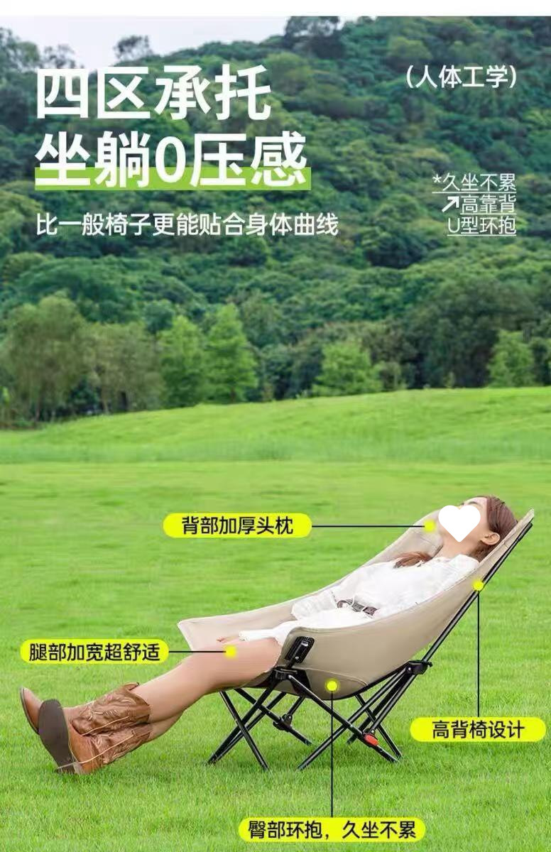 앉고 누울 수 있는 3단 조절식 문체어, 야외용 높은 등받이, 캠핑 및 낮잠용 휴대용 접이식 의자스토어 가기