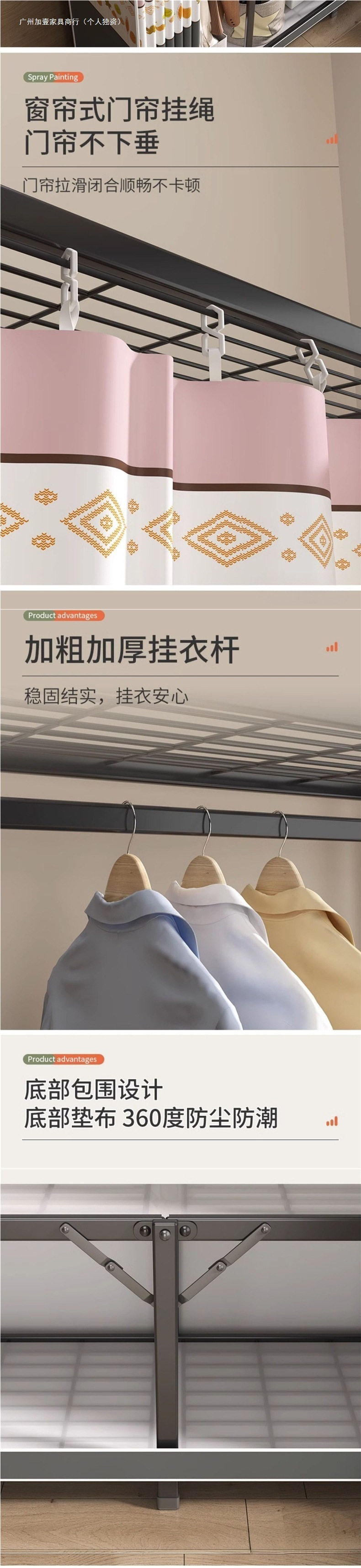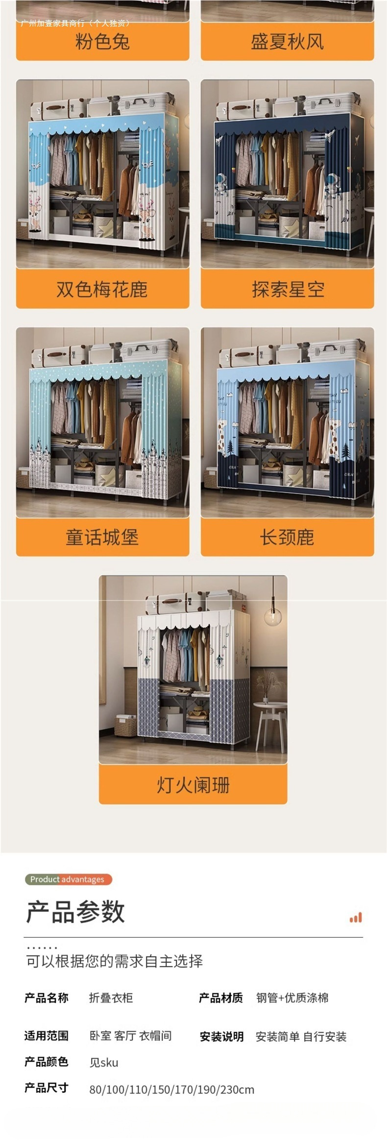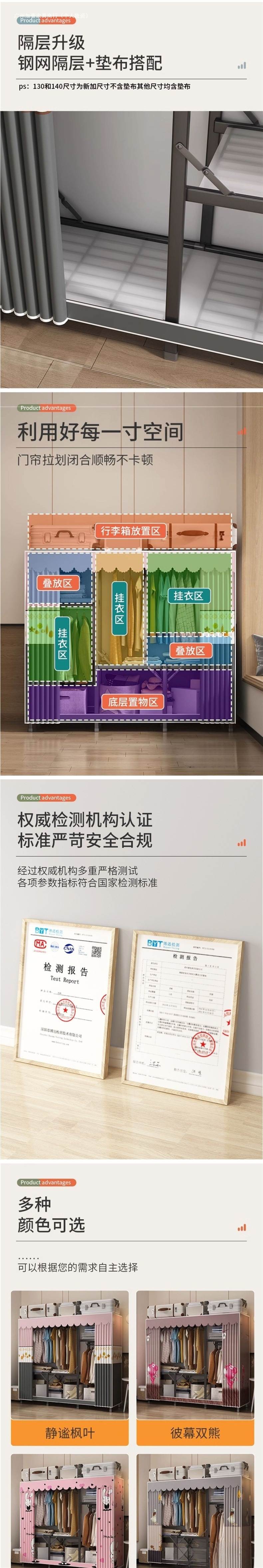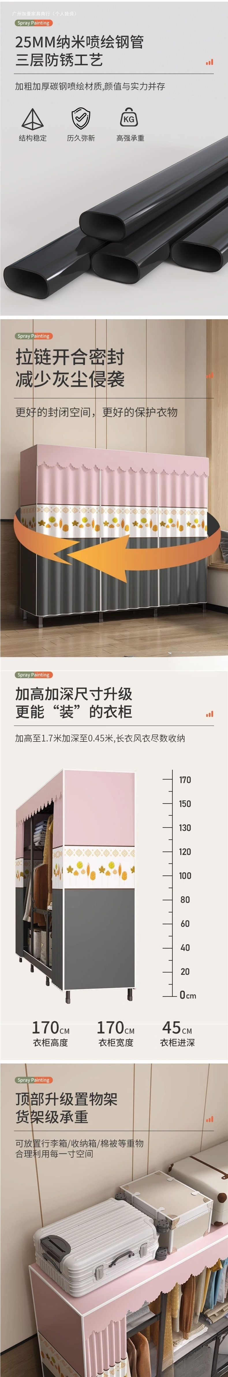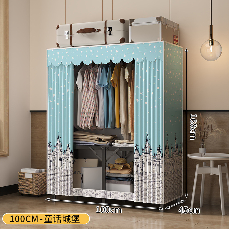 강철 프레임 간단한 옷장 가정용 임대 접이식 침실 내구성 설치가 필요없는 전체 천 옷장 작은 아파트