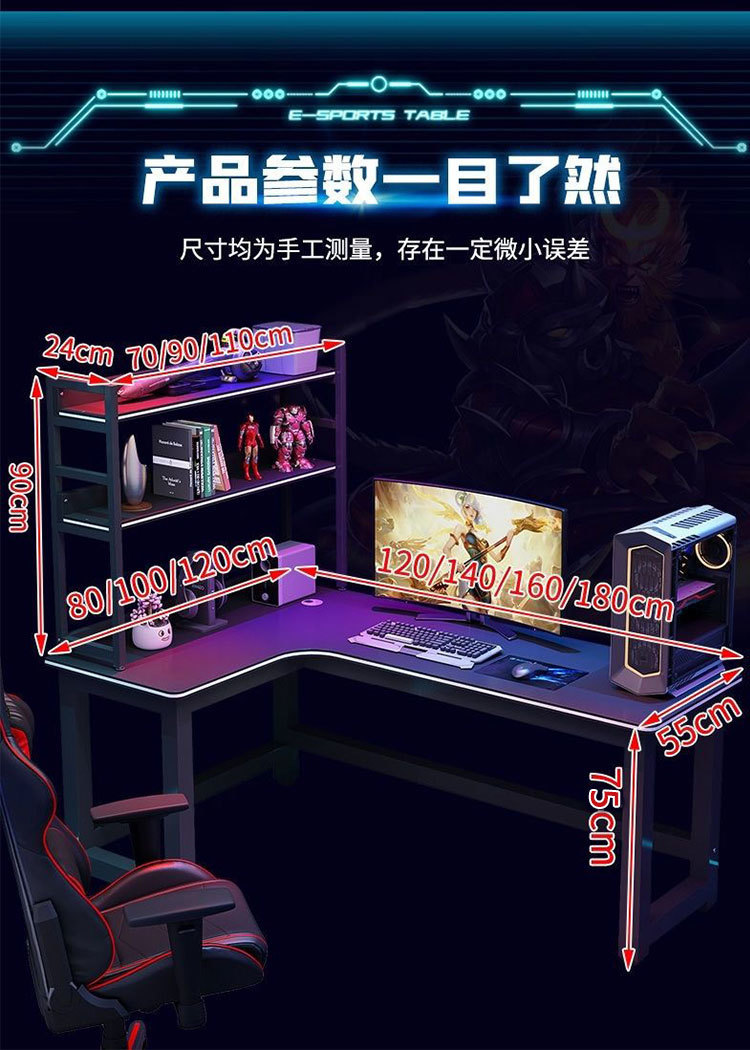 데스크탑 코너 컴퓨터 책상 두꺼운 간단한 충전식 홈 더블 게임 테이블 학습 L자형 책상 스탠드 조합