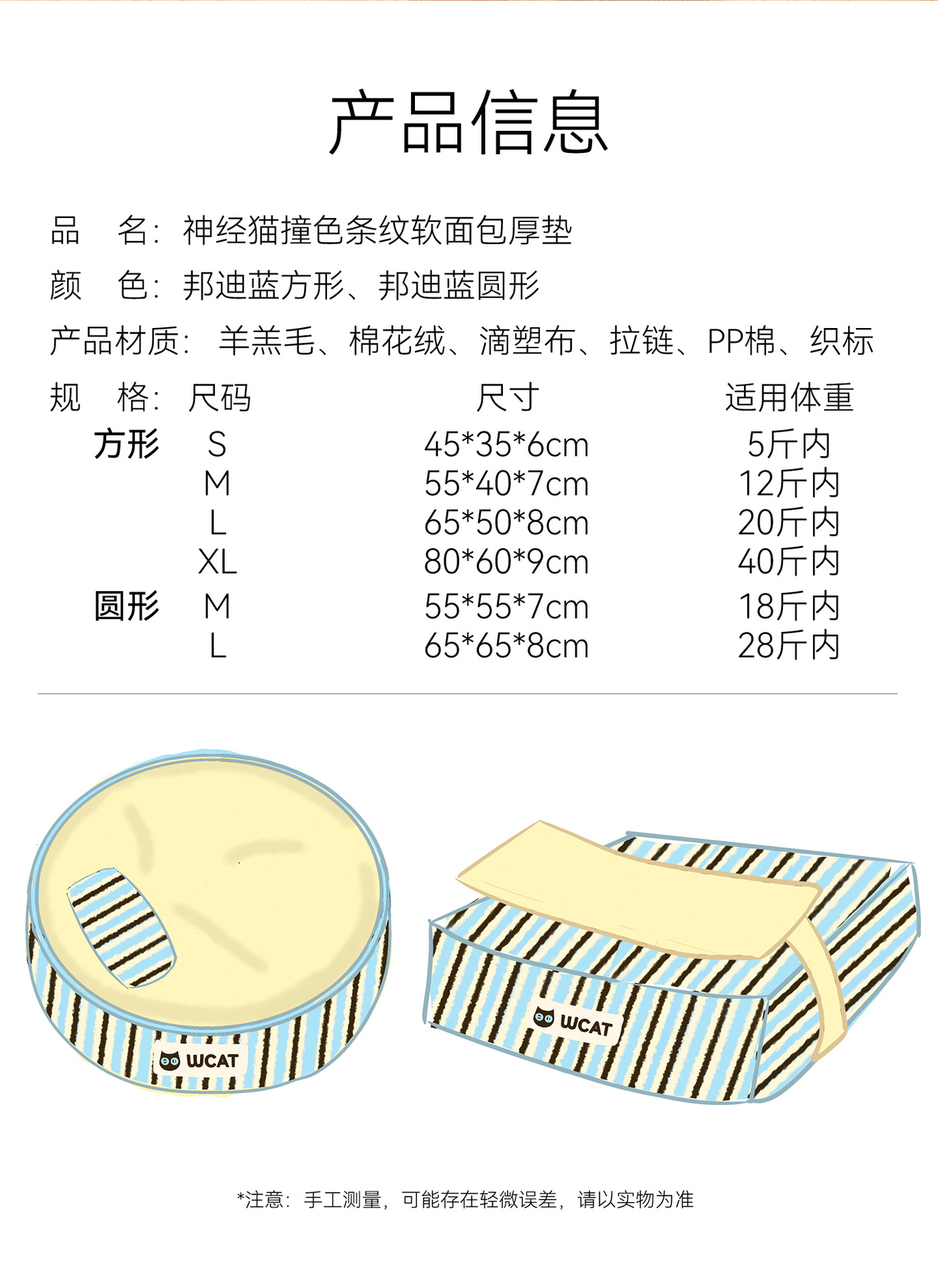 신경 고양이 베개 사각형 둥지 대비 색 줄무늬 부드러운 빵 두꺼운 쿠션 고양이 개집 고양이 침대 가을, 겨울 두꺼운 애완 동물 개집