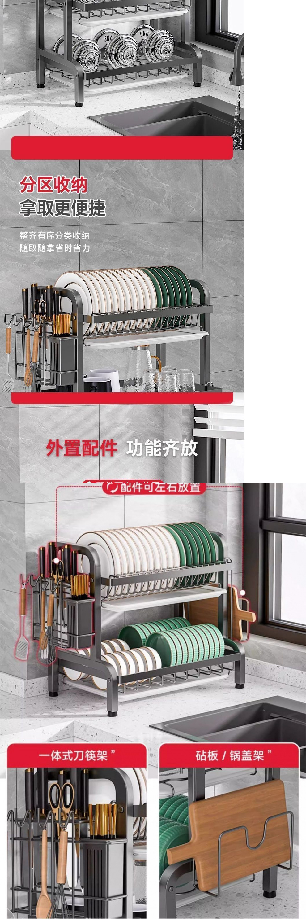 • 【42cm长】两层主架+刀架+筷筒+菜板架