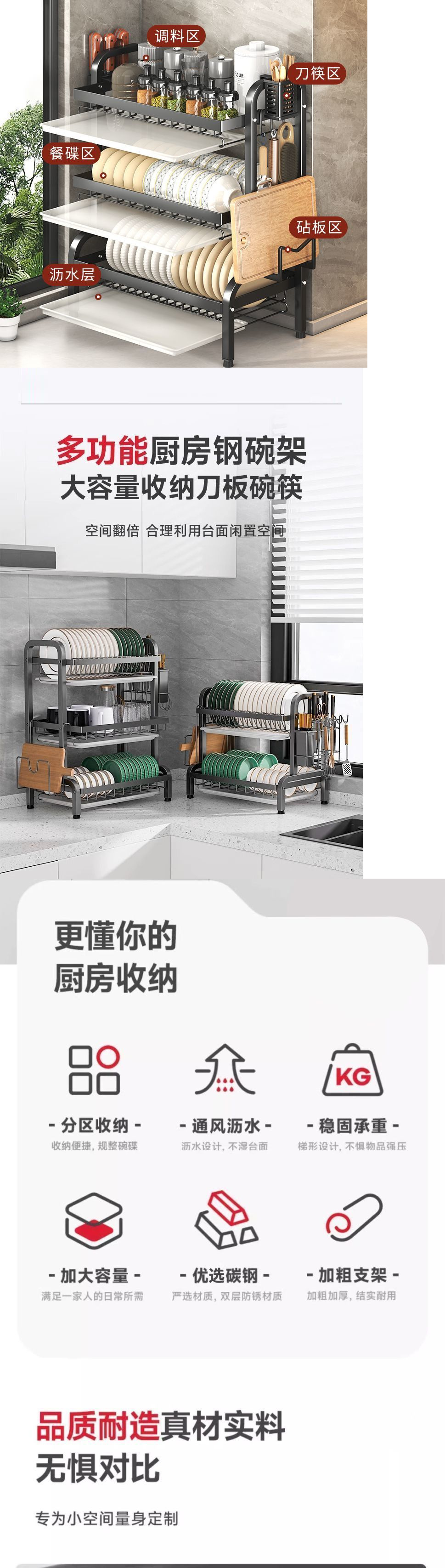 碗碟收纳架碗架沥水架厨房置物架多功能碗筷收纳架碗柜碗盘架刀架
