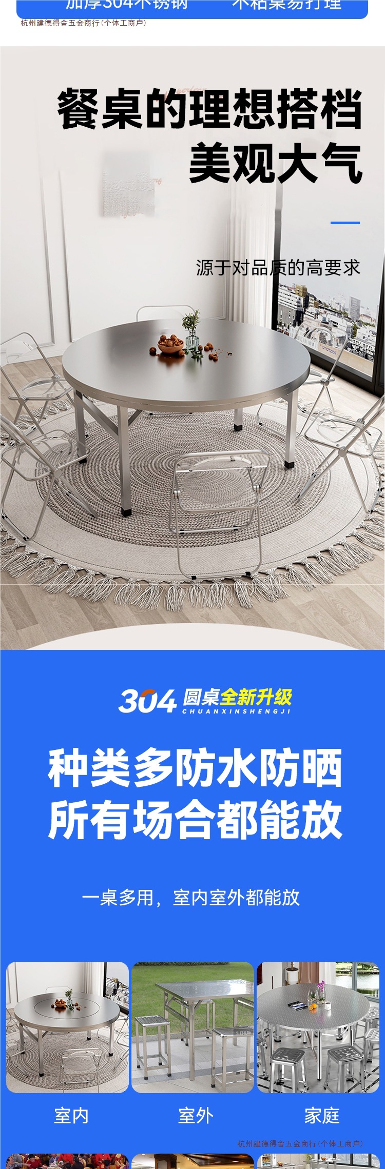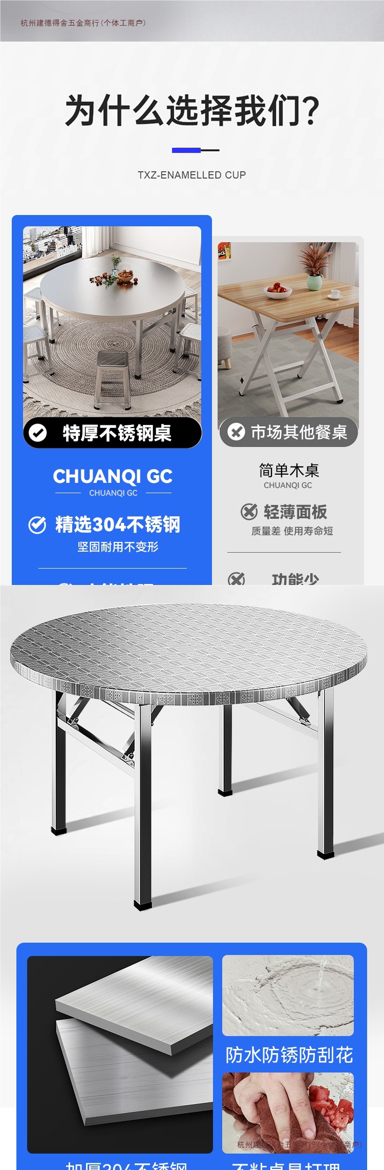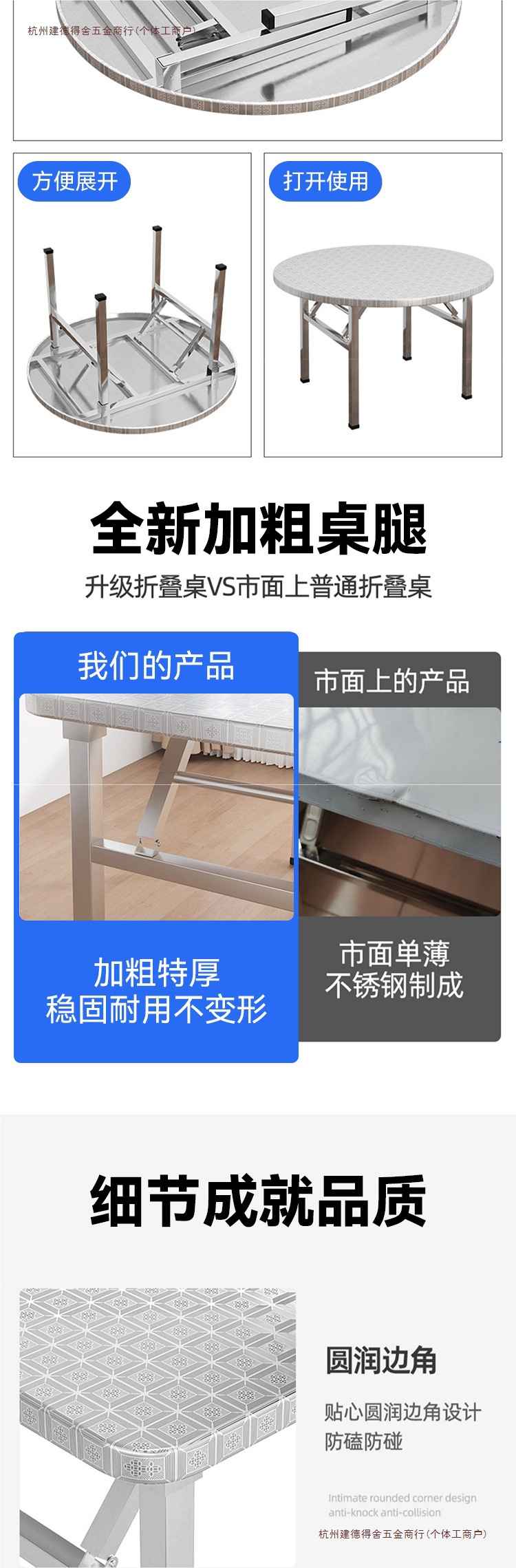 304 두꺼운 스테인레스 스틸 원형 테이블 접이식 야시장 스톨 테이블 간단한 사각형 테이블 야외 바베큐 간단한 식탁