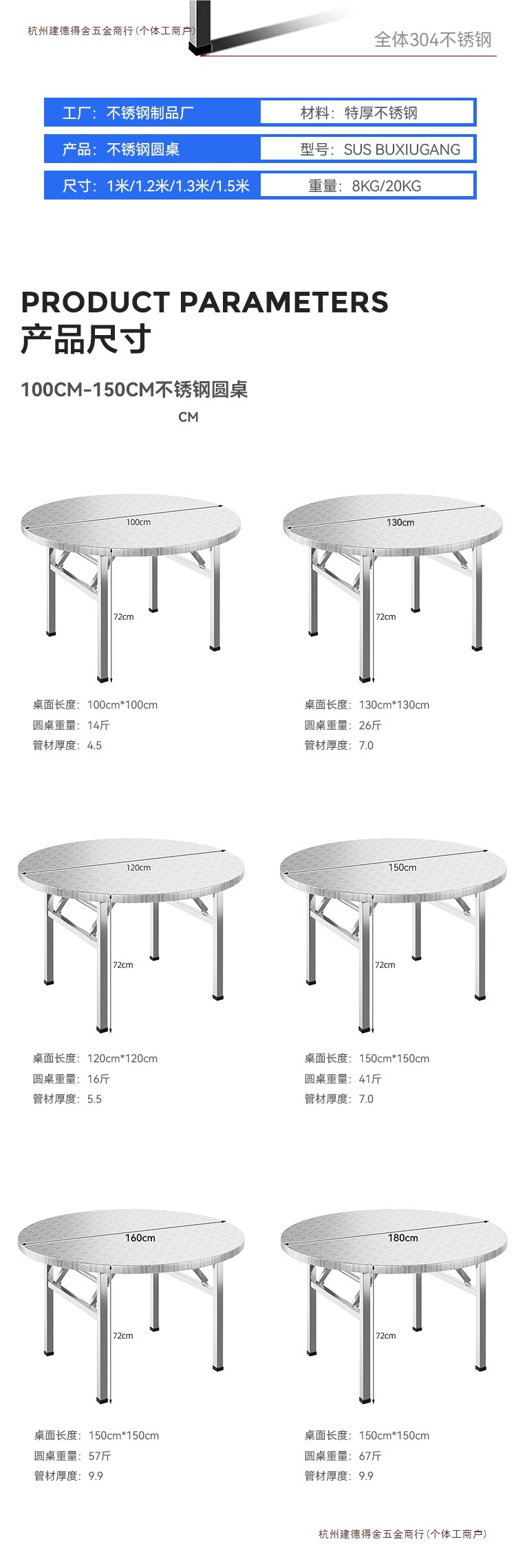 • 두꺼운 1.3m 일체형 접이식 원형 테이블(높이 75cm )