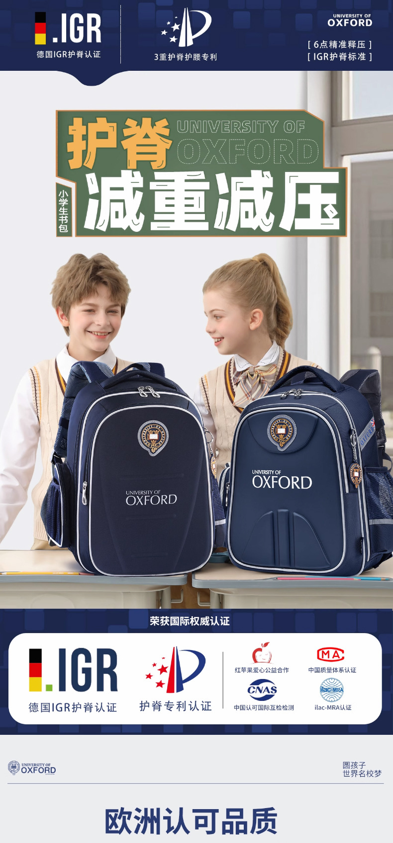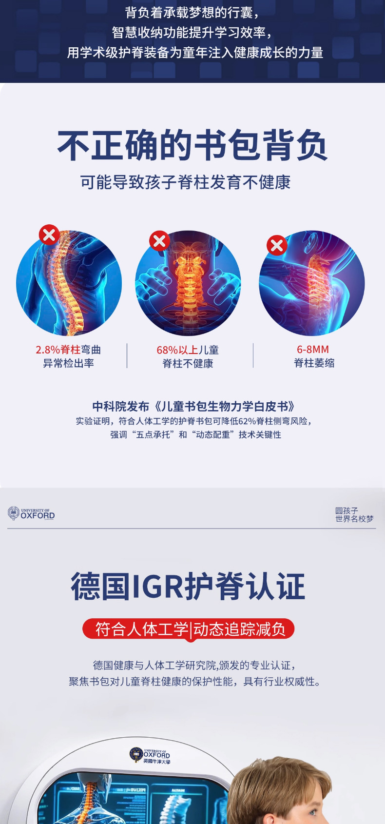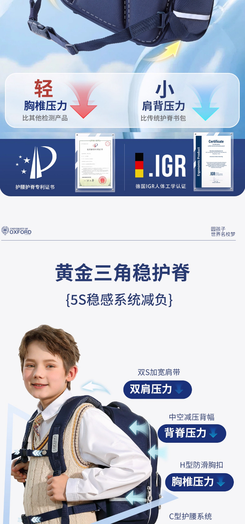 옥스포드 대학 1, 2, 3~6학년 어린이 소년 책가방 초등학생 대용량 부담 감소 배낭 신규
