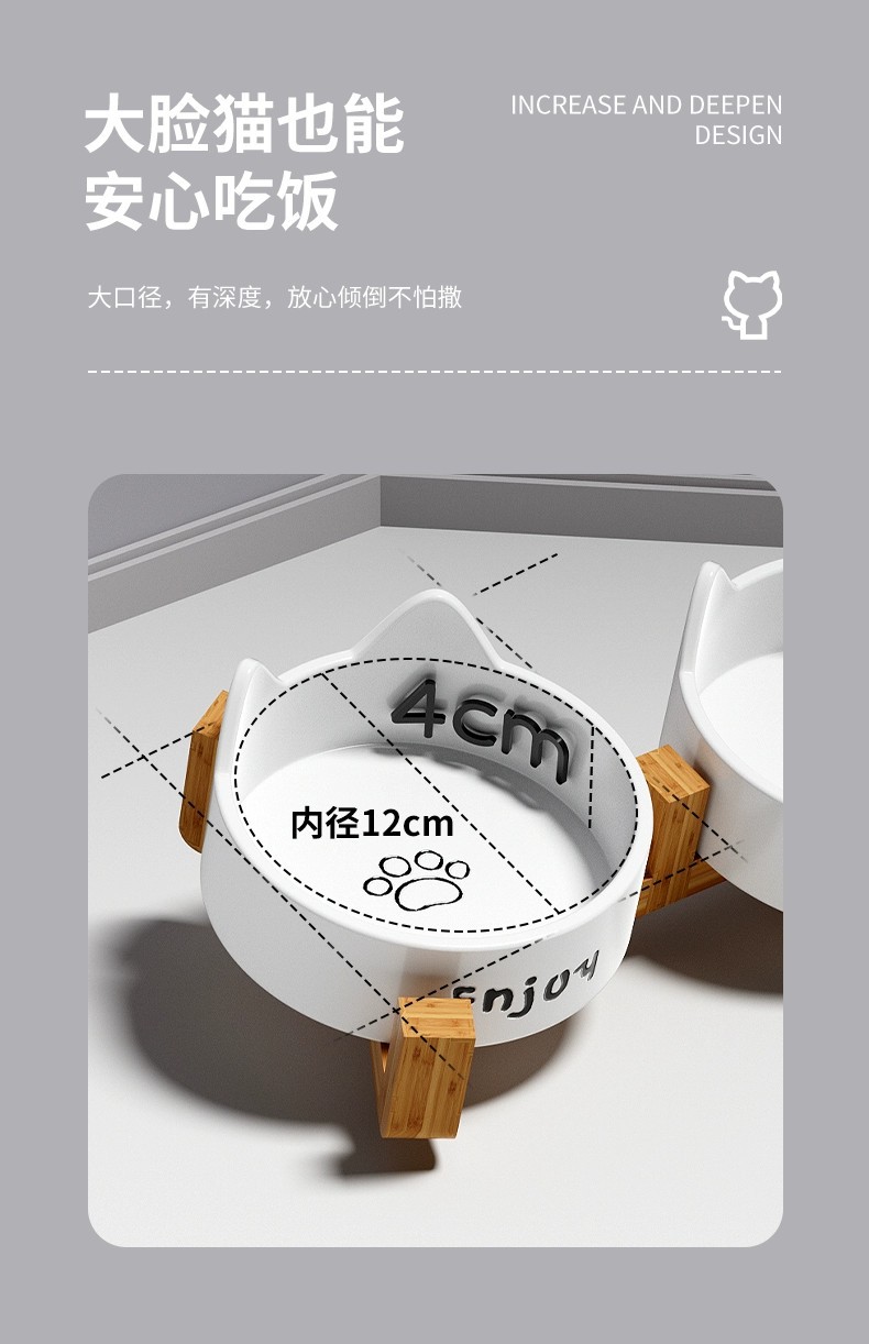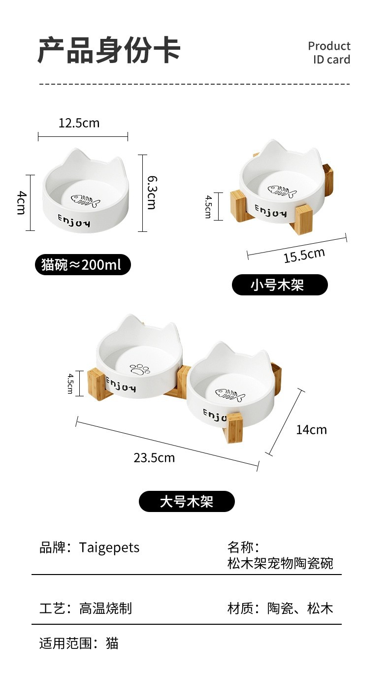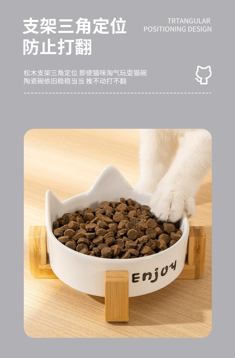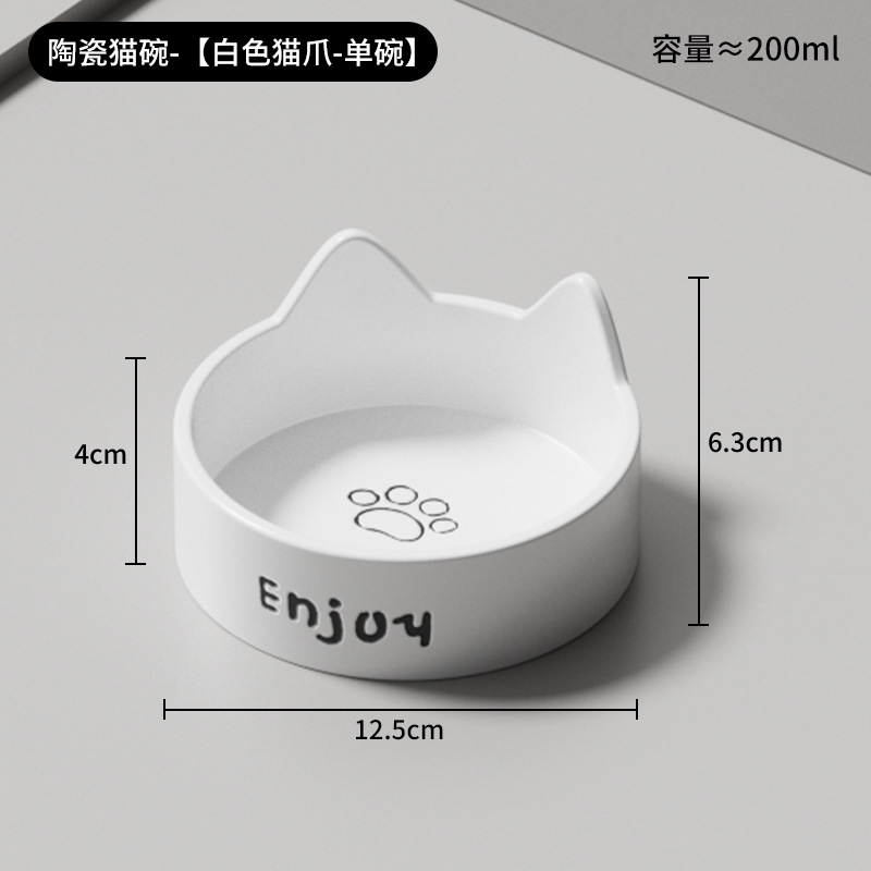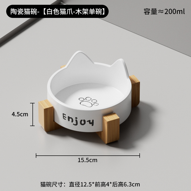 • 세라믹 고양이 그릇-[미야 흰 고양이 발톱 싱글 그릇 + 나무 스탠드]