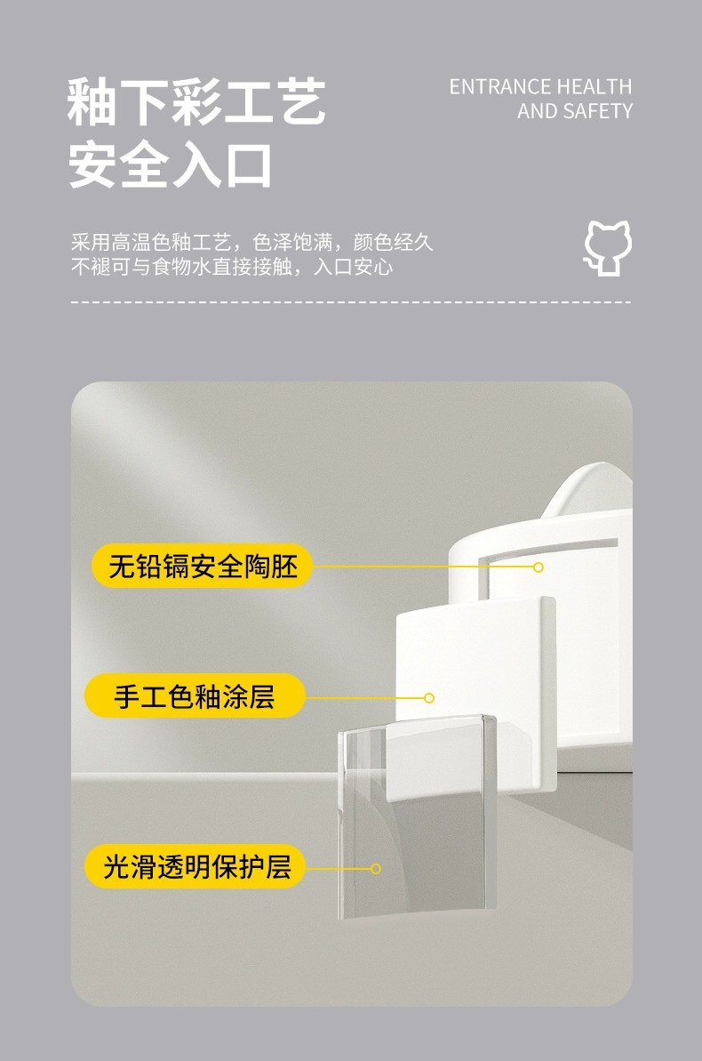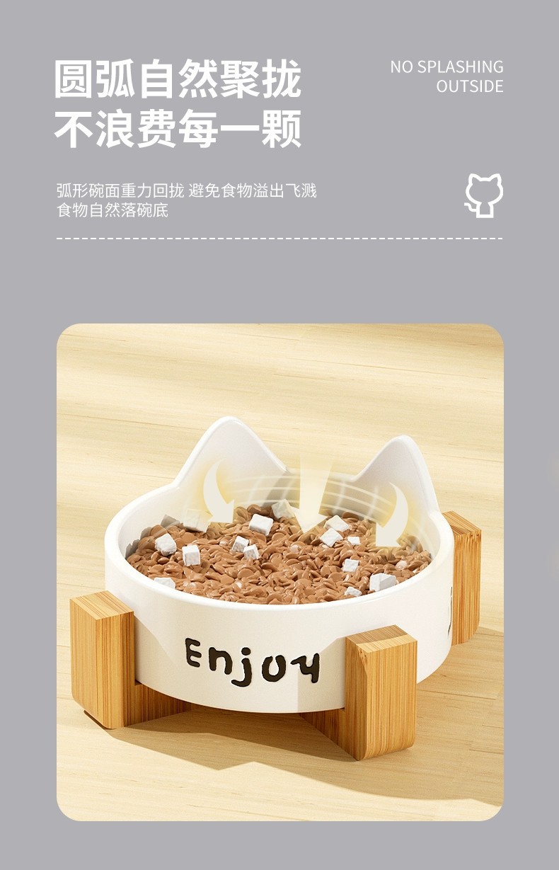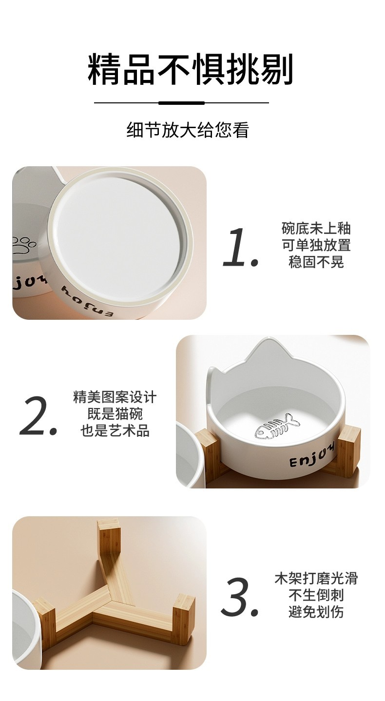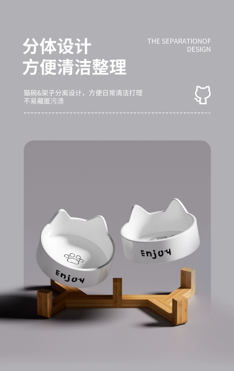 • 세라믹 고양이 그릇-[미야 흰 고양이 발톱 싱글 그릇 + 나무 스탠드]