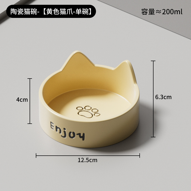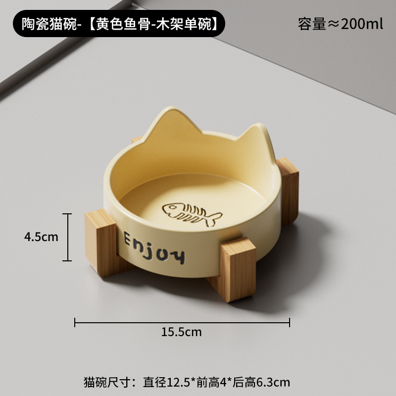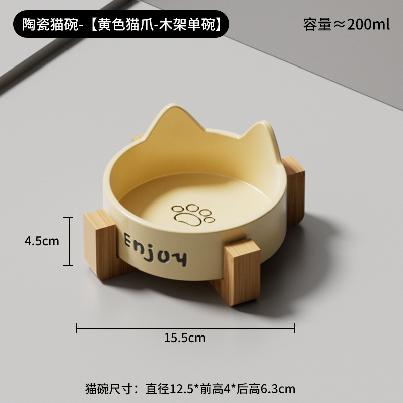• 세라믹 고양이 그릇-[크림 노란색 고양이 발톱 싱글 그릇 + 나무 스탠드]