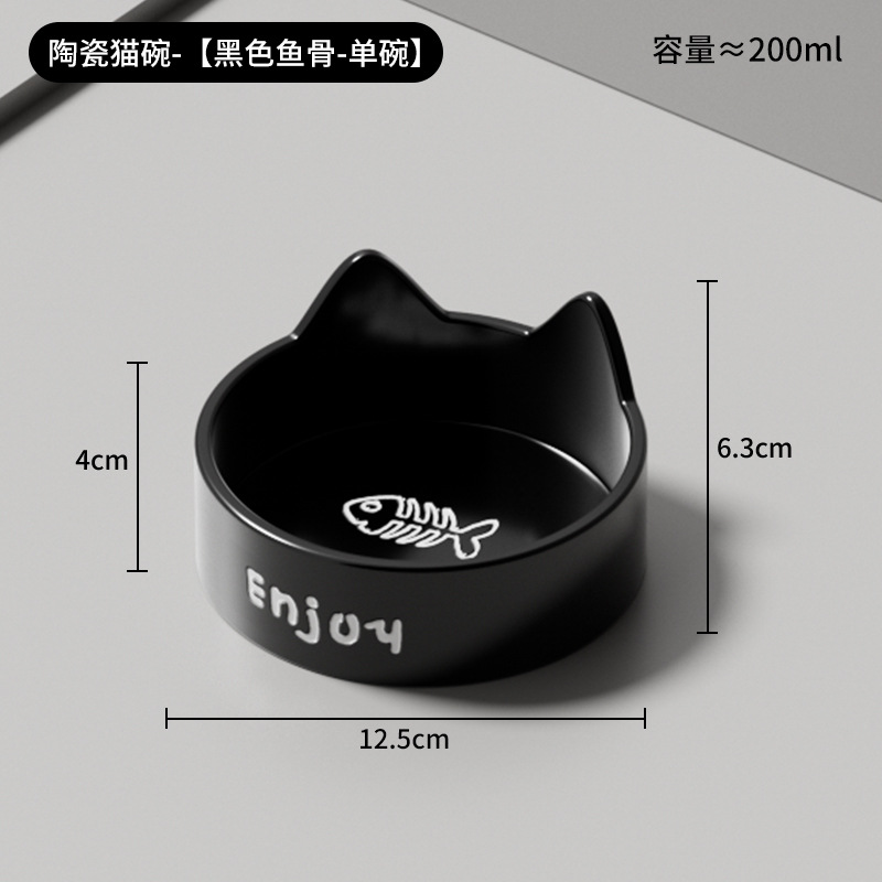 • 세라믹 고양이 그릇-[모야 검은 물고기 뼈-싱글 그릇]