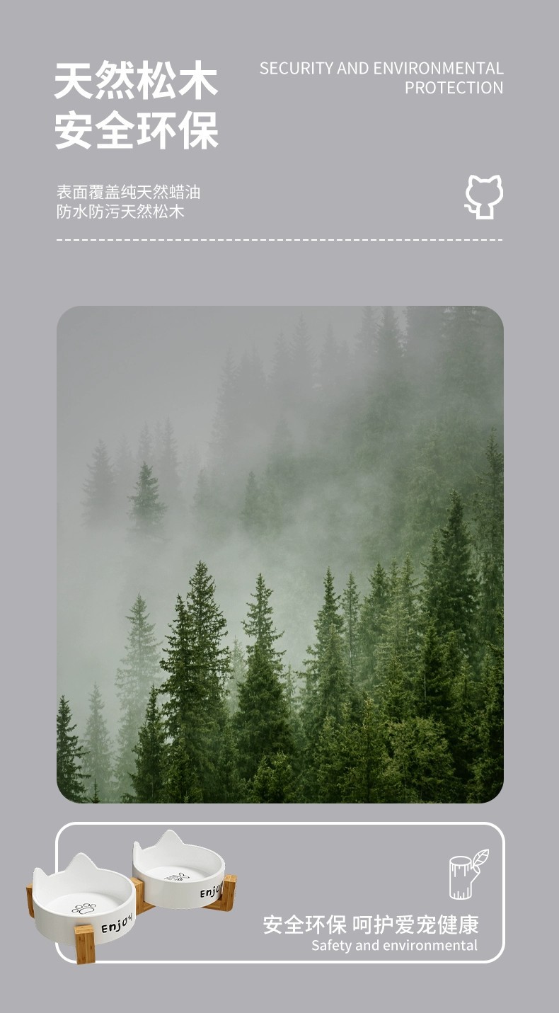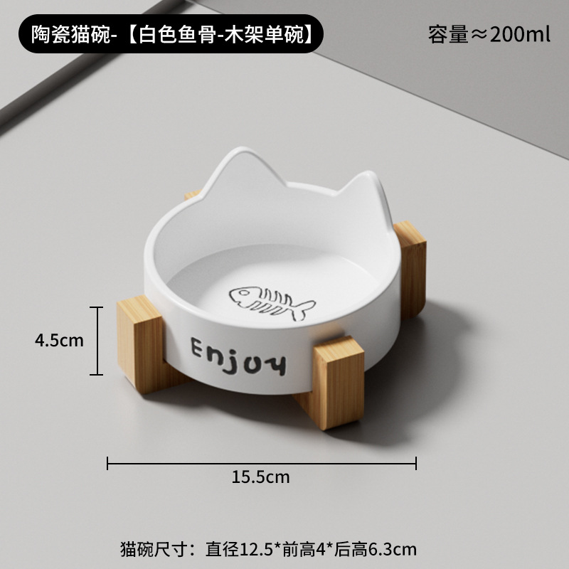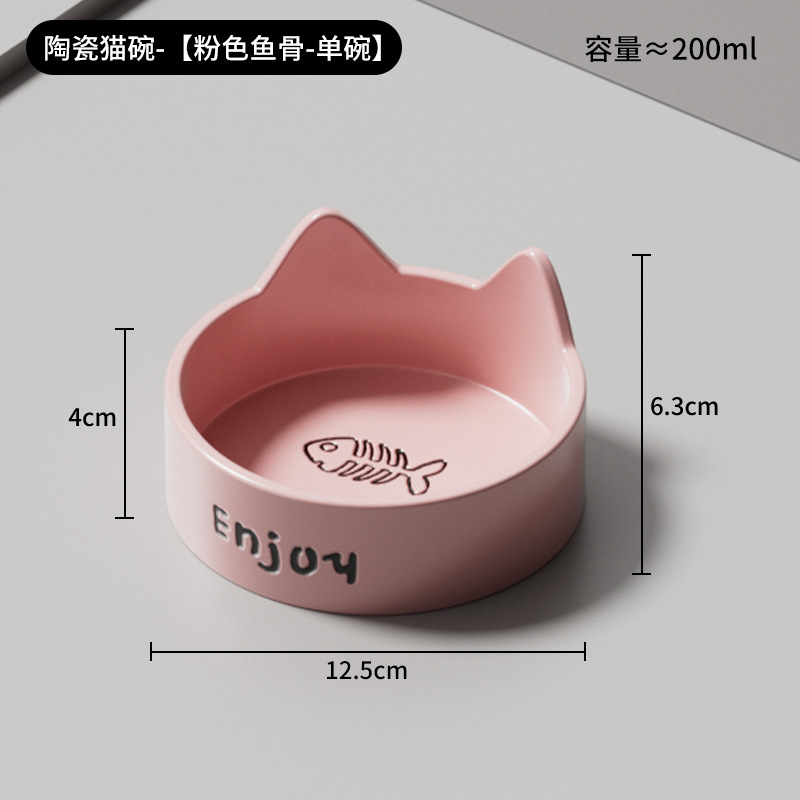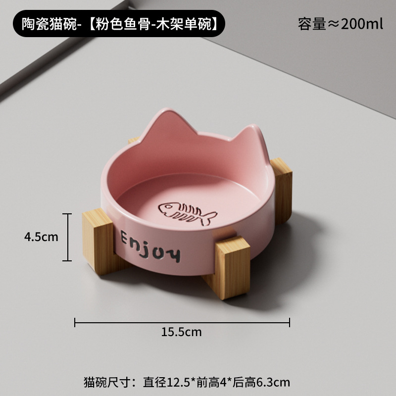 • 세라믹 고양이 그릇-[사쿠라 핑크 생선뼈 단일 그릇 + 나무 스탠드]