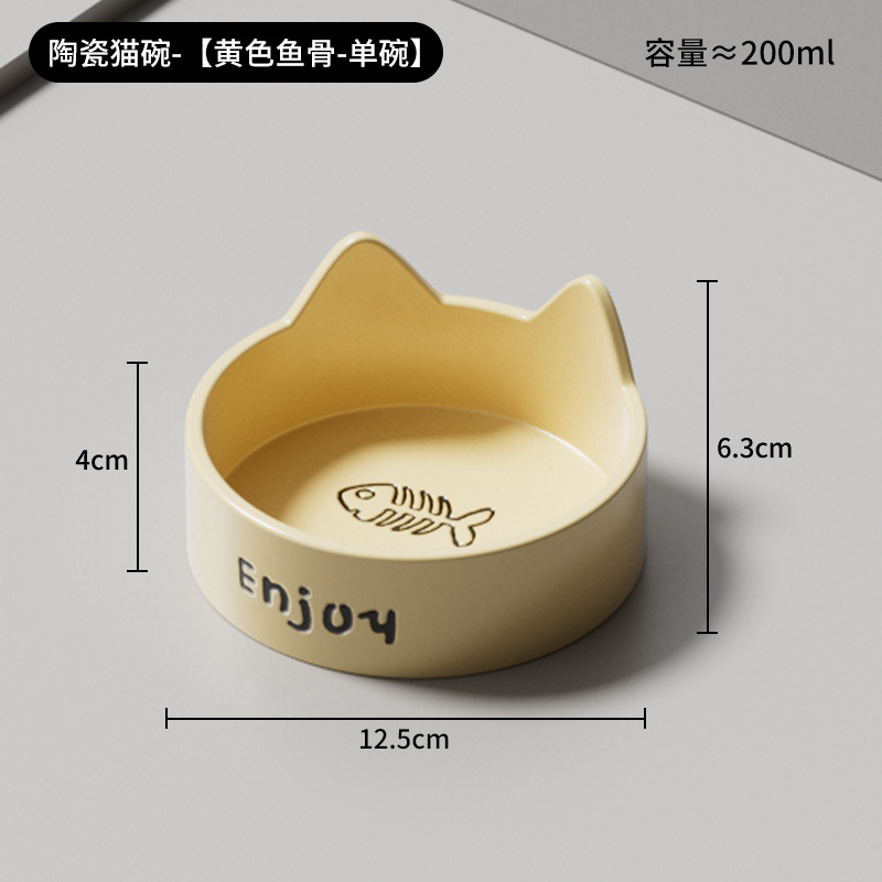 • 세라믹 고양이그릇-[크림노랑 민어뼈-싱글그릇]