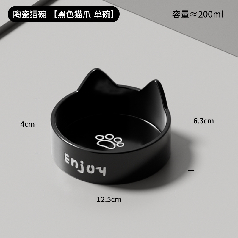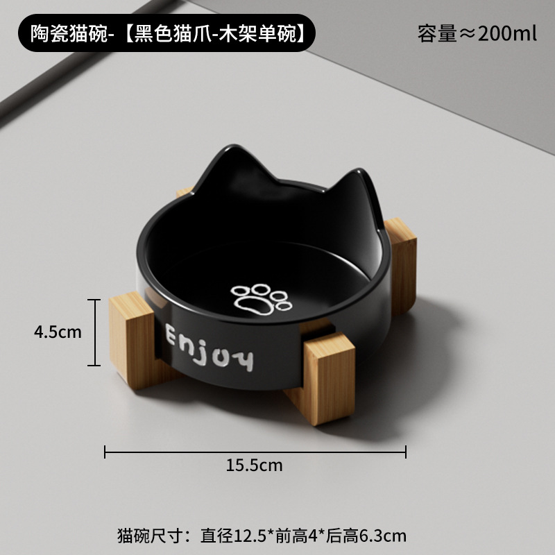 • 세라믹 고양이 그릇-[모야 검은 고양이 발톱 싱글 그릇 + 나무 스탠드]