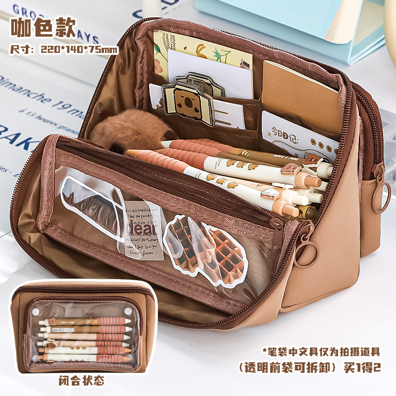 • 대용량 탈부착형 필통 - 커피색상