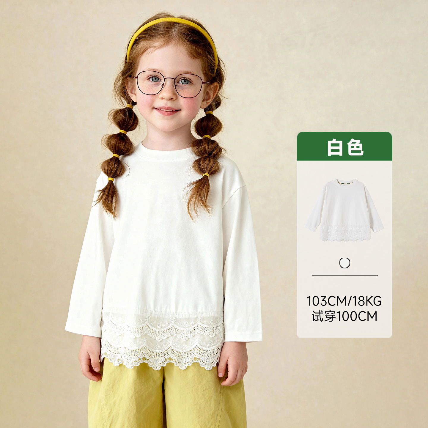 통베이 아동복 2026년 봄 신상 여아용 달콤한 티셔츠 레이스 스티치 중간 길이 라운드넥 이너웨어스토어 가기