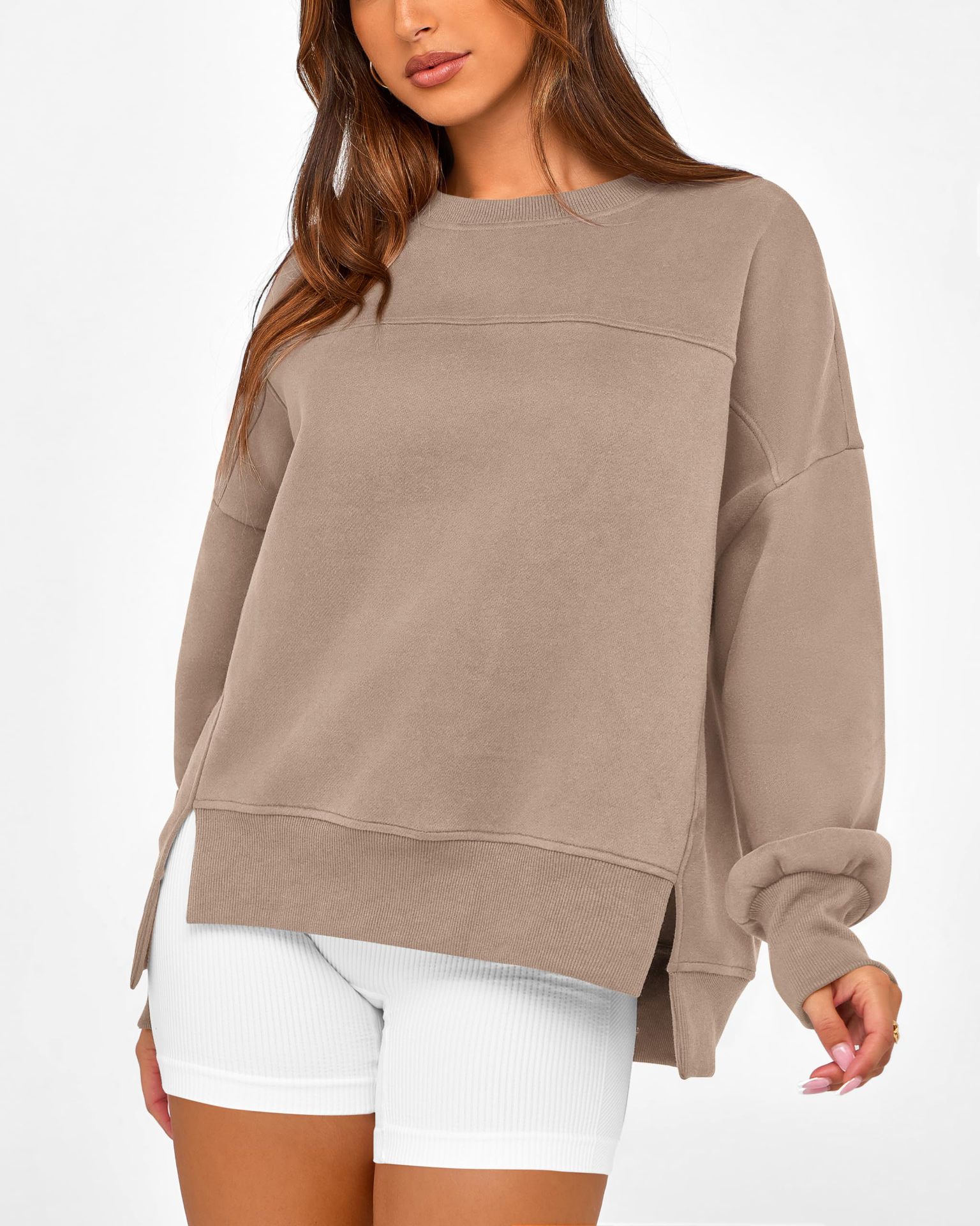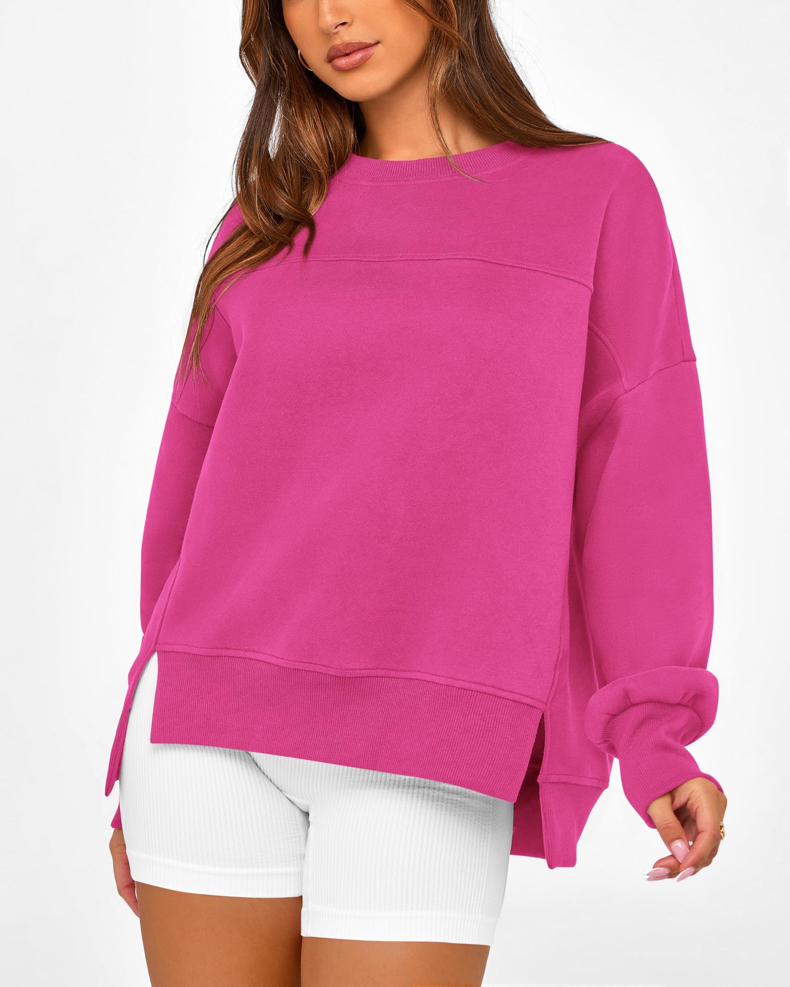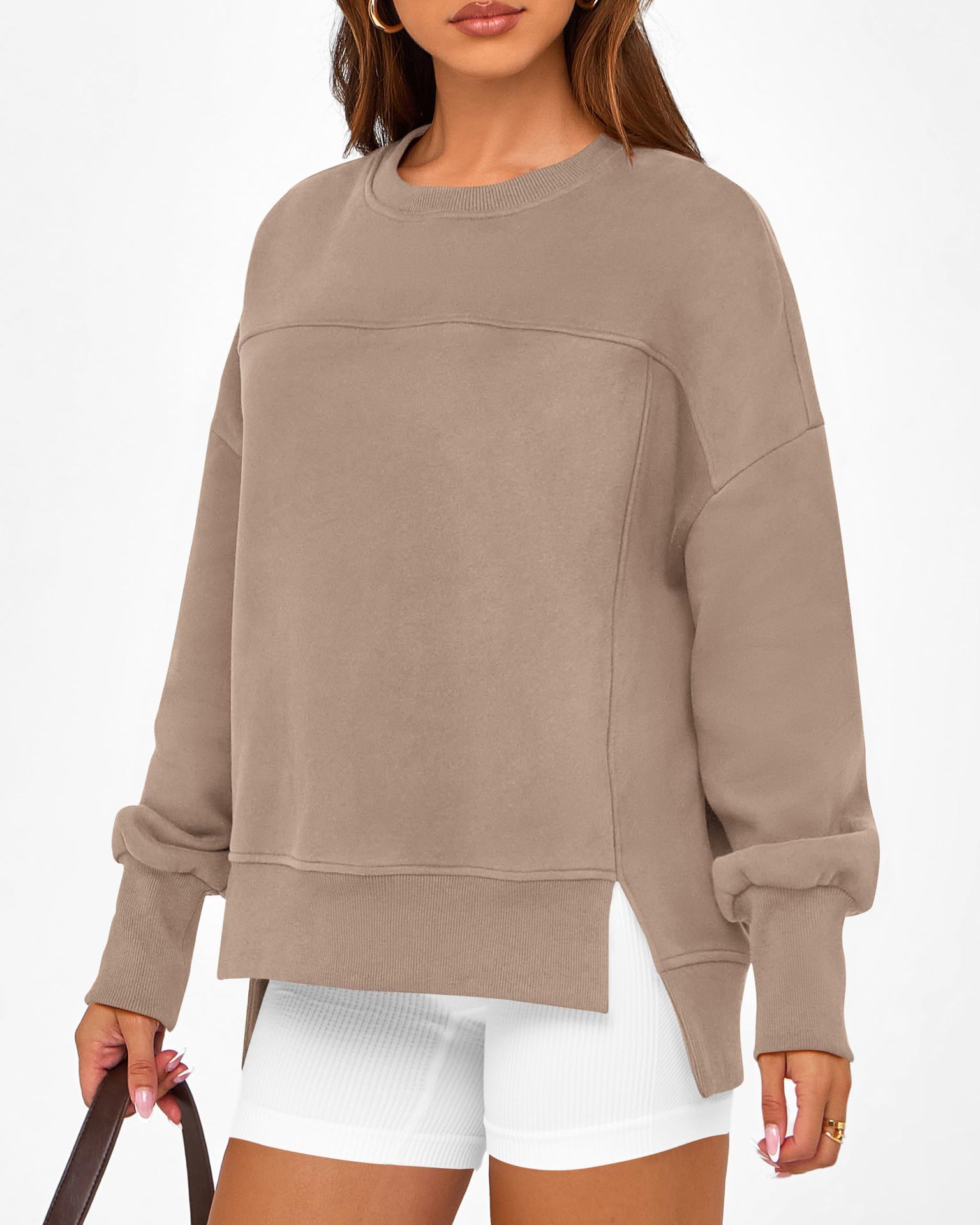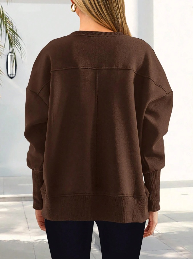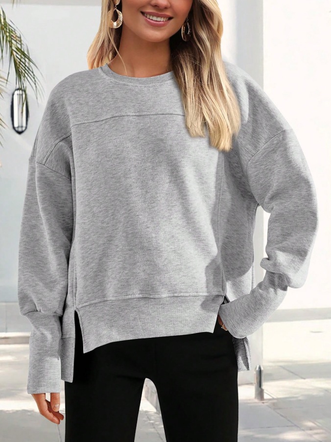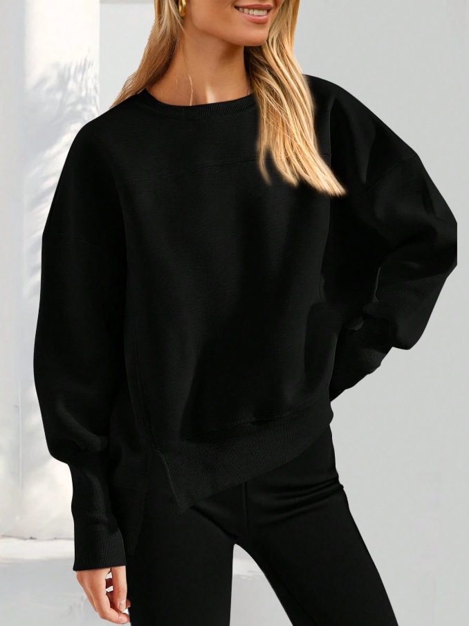 2025 유럽과 미국의 국경 간 여성 의류 Amazon 가을 겨울 신작 라운드 넥 긴팔 슬릿 캐주얼 루즈 다용도 스웨트 셔츠