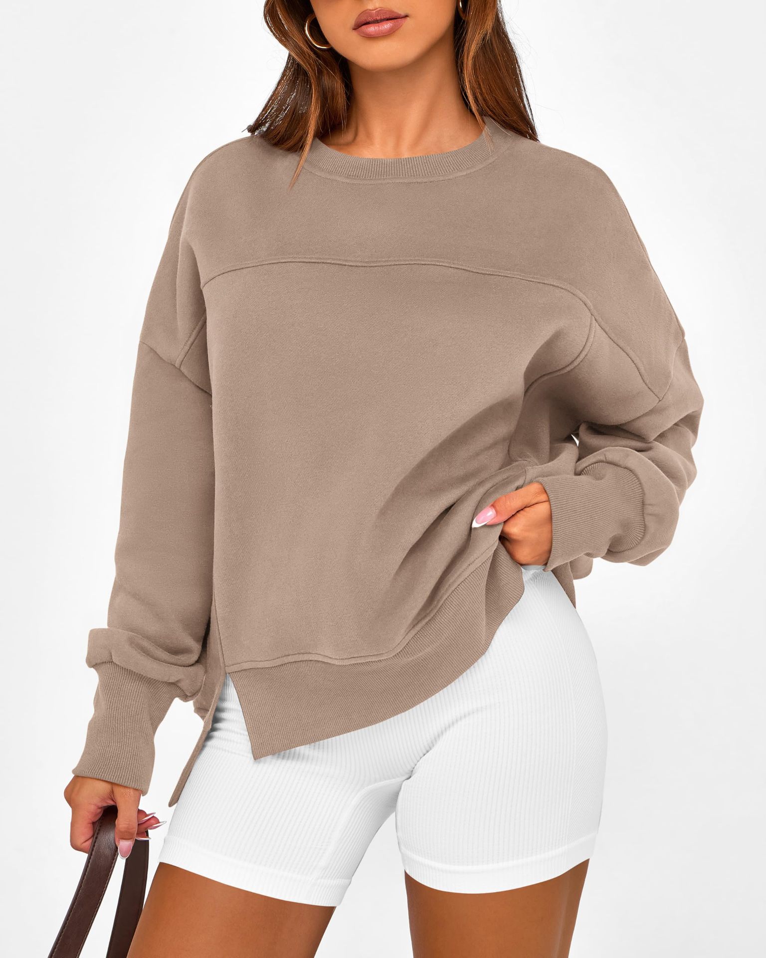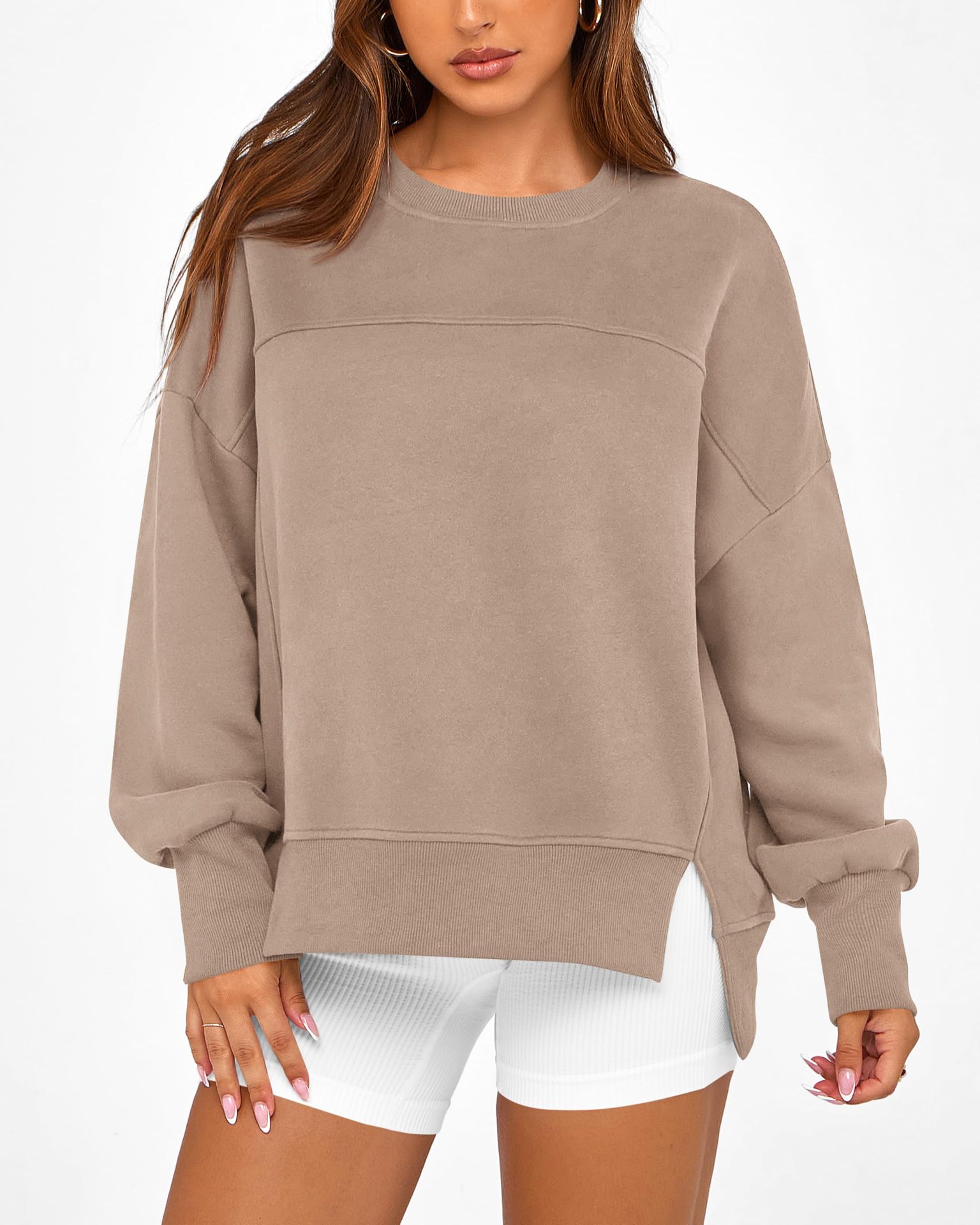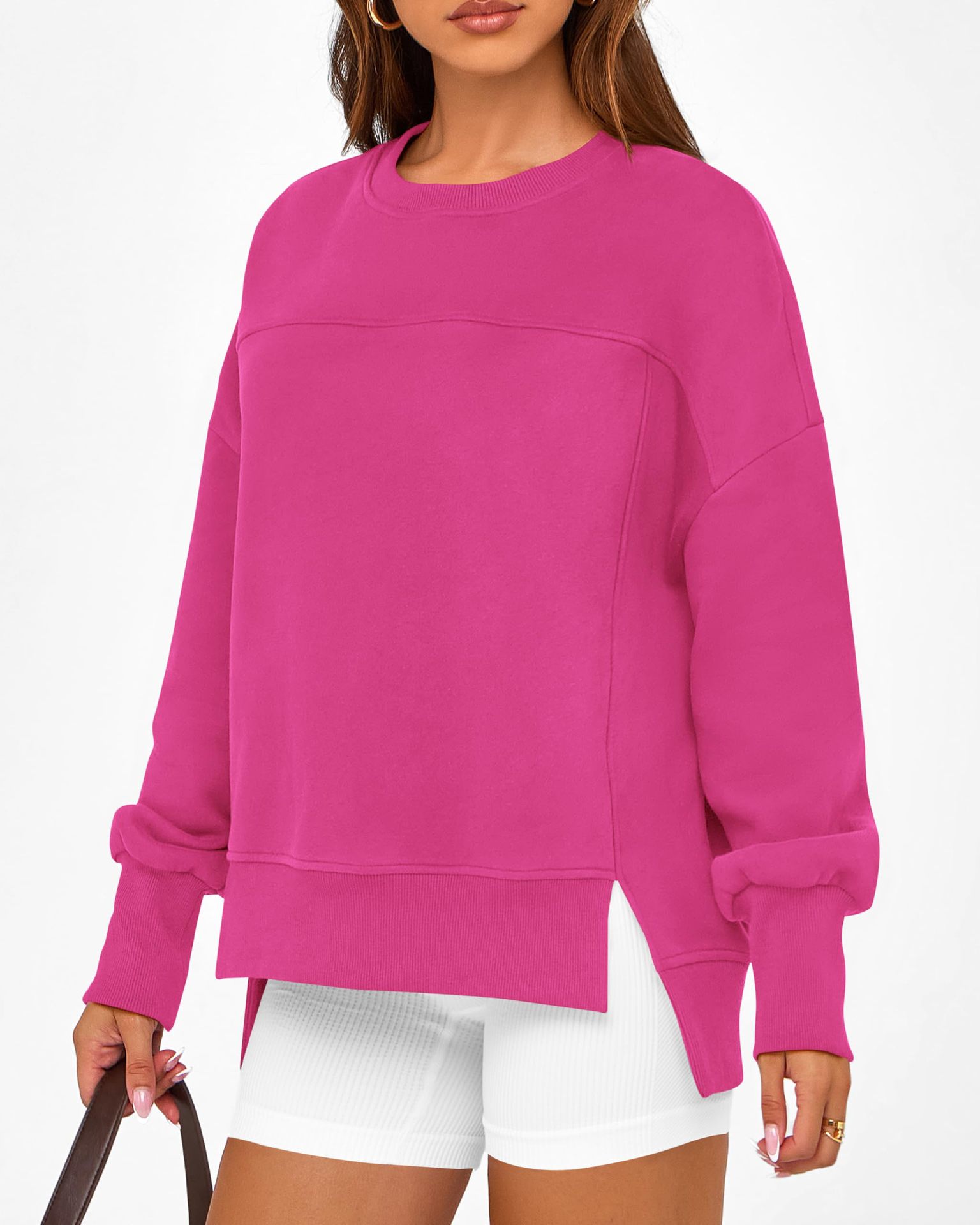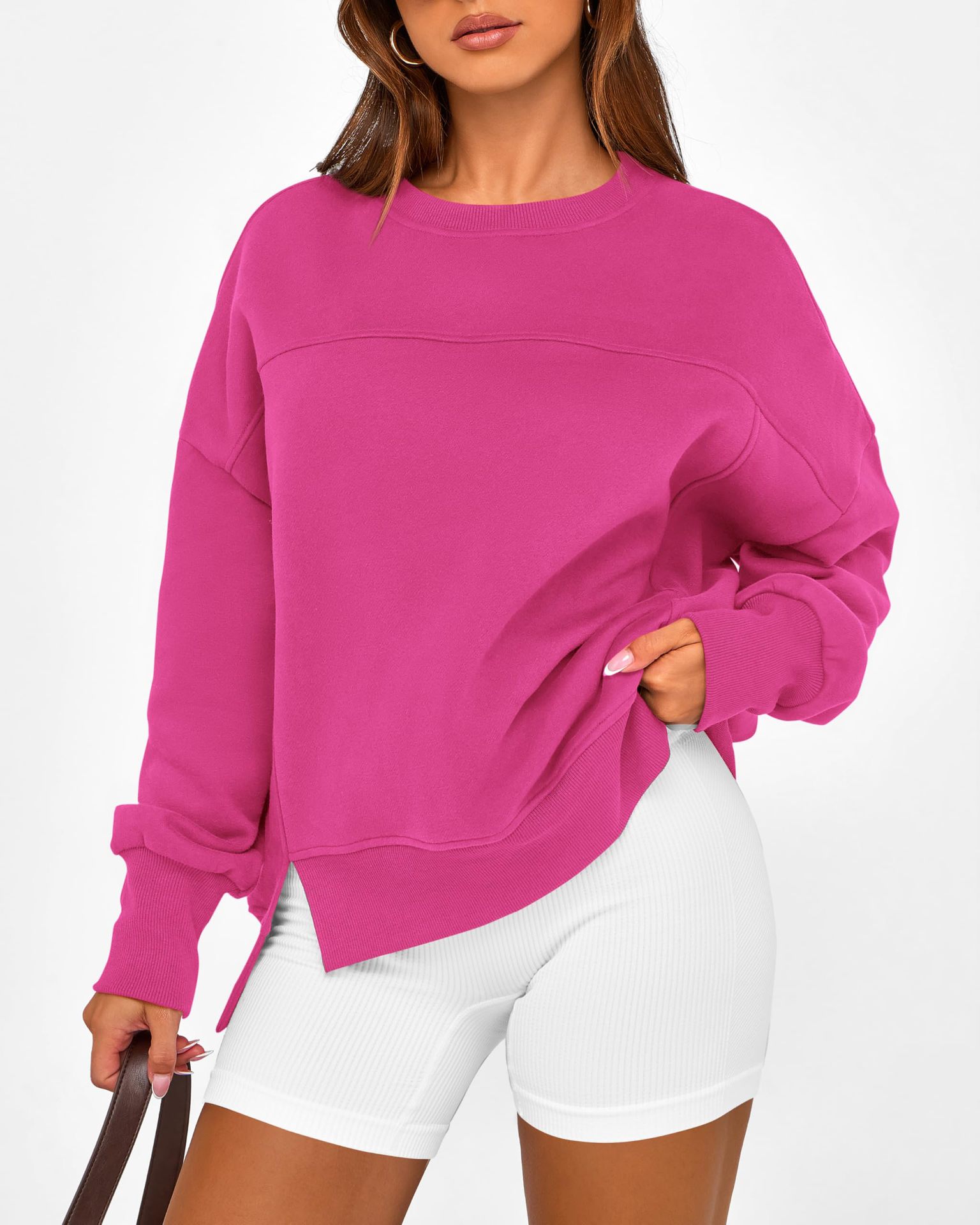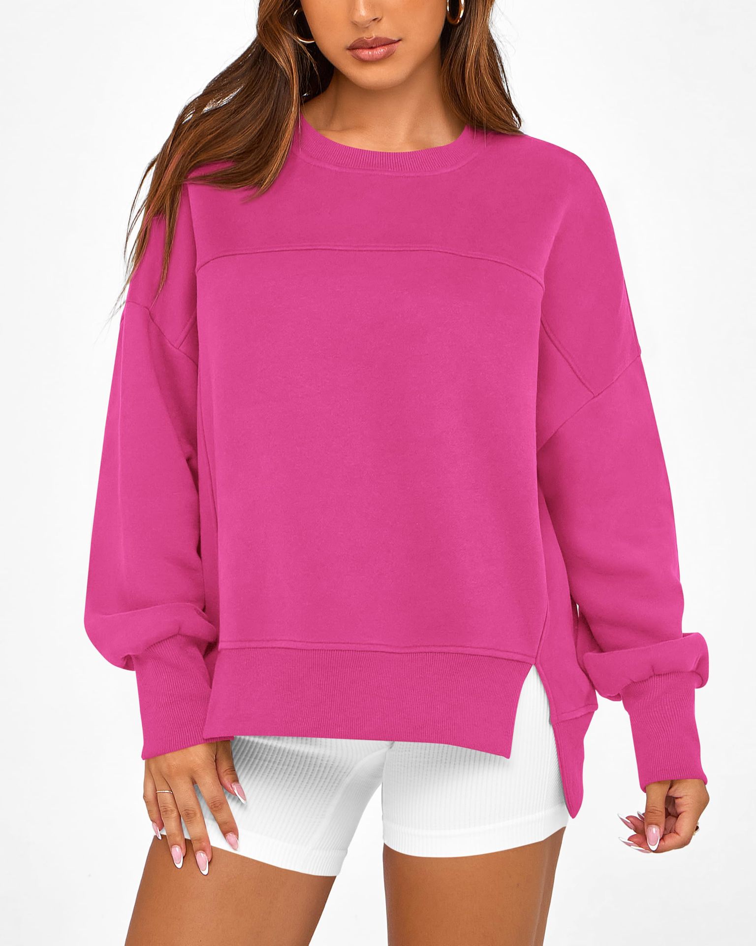 2025 유럽과 미국의 국경 간 여성 의류 Amazon 가을 겨울 신작 라운드 넥 긴팔 슬릿 캐주얼 루즈 다용도 스웨트 셔츠