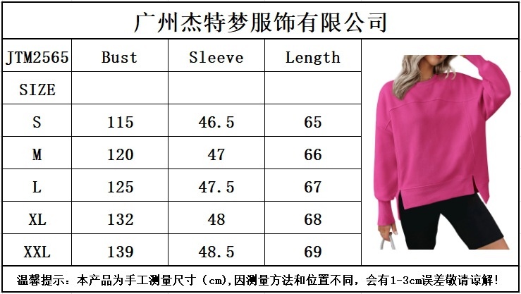 2025 유럽과 미국의 국경 간 여성 의류 Amazon 가을 겨울 신작 라운드 넥 긴팔 슬릿 캐주얼 루즈 다용도 스웨트 셔츠스토어 가기