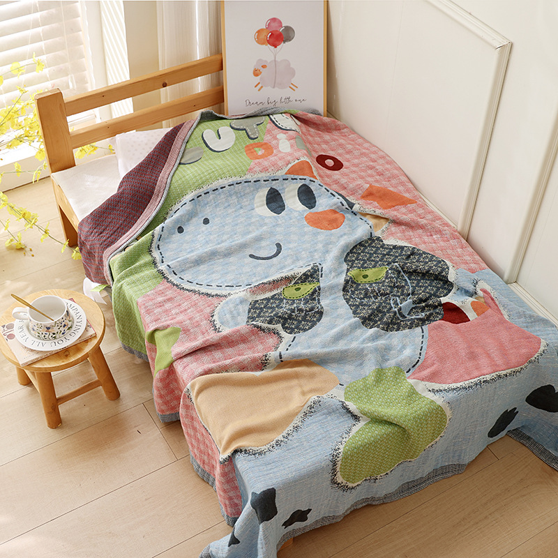 대나무 섬유 냉각 담요 어린이 만화 동물 에어컨 이불 통기성 침대 커버 담요 여름 학생 기숙사 낮잠 담요