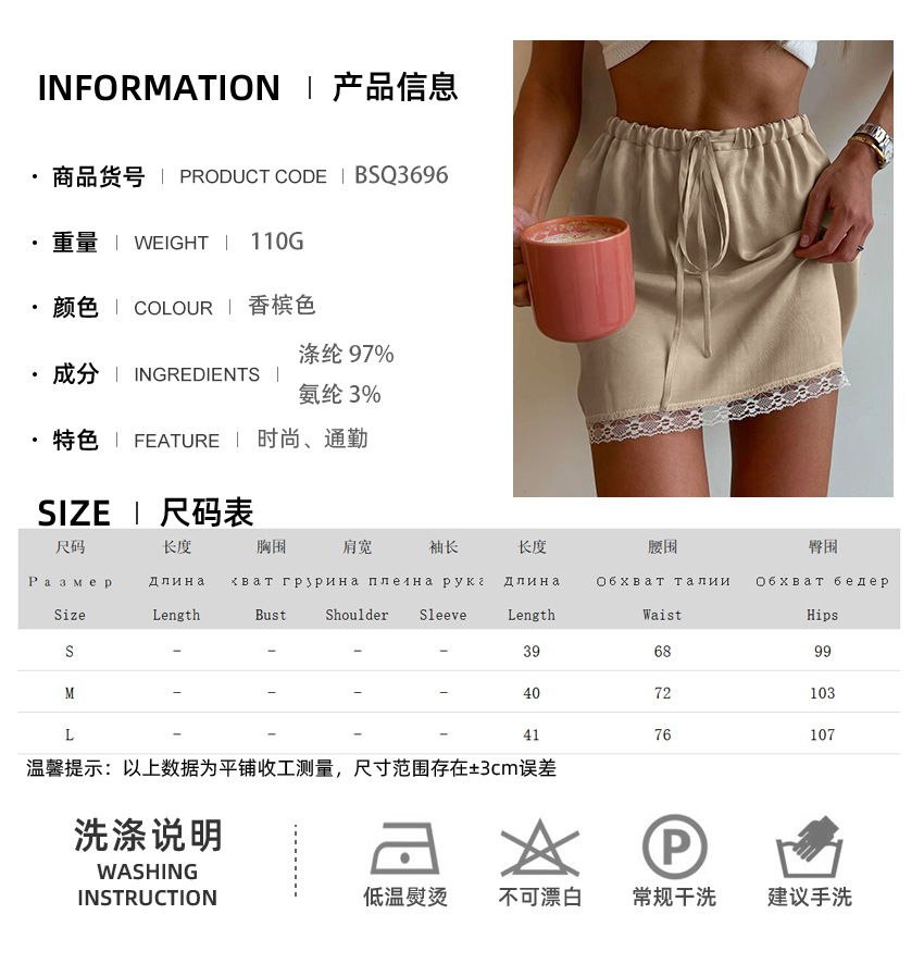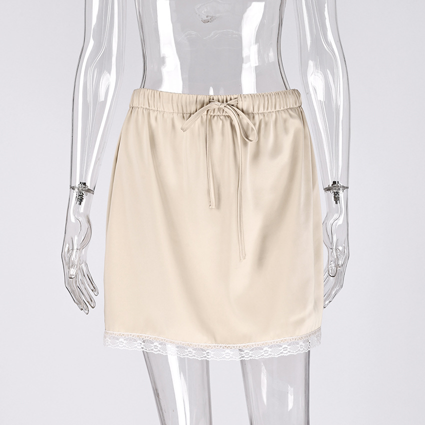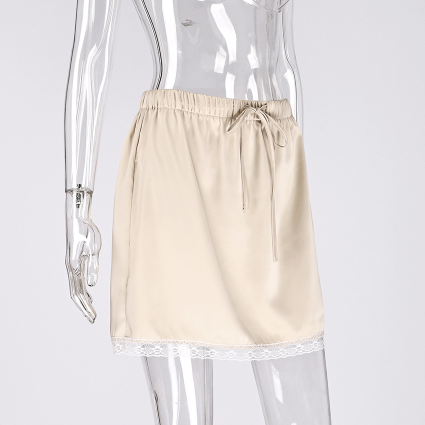 2025년 신상 여름 레이스 레이스업 새틴 스커트 디자인, 패셔너블하고 캐주얼한 크로스보더 통근스토어 가기