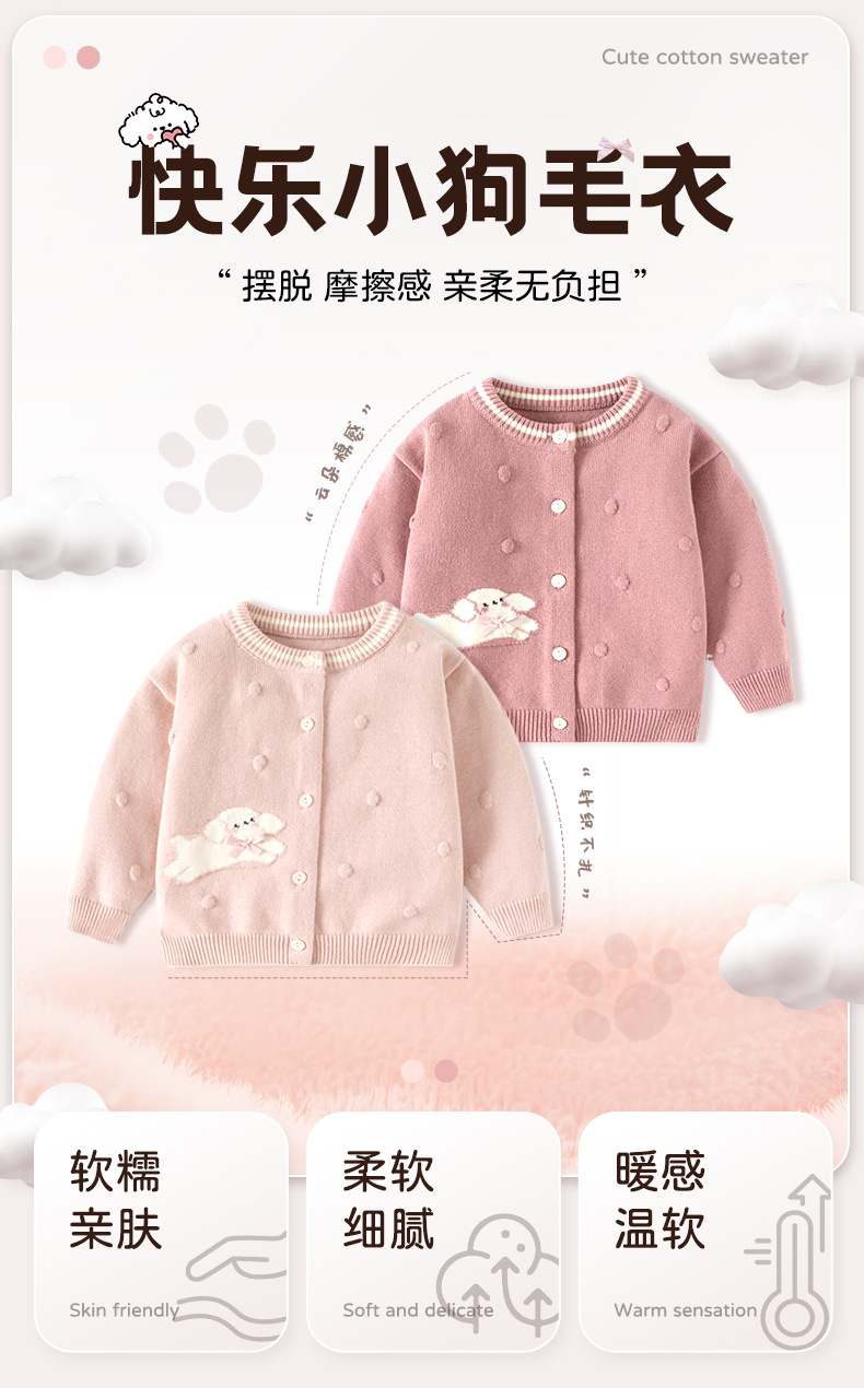 해피퍼피 순면 니트 아기 가디건 봄가을 구름같은 부드러움의 아동용 스웨터 가디건 부드러운 A급 아기 스웨터