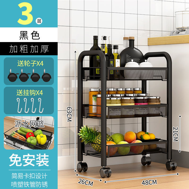 주방 보관 랙 가정용 다층 모바일 보관 랙 바닥 보관 트롤리 다기능 야채 및 과일 랙스토어 가기
