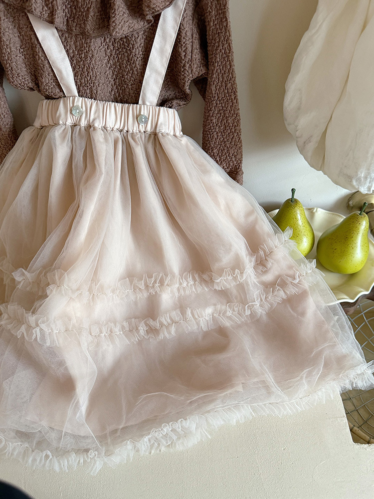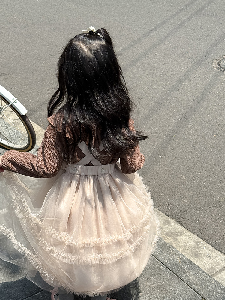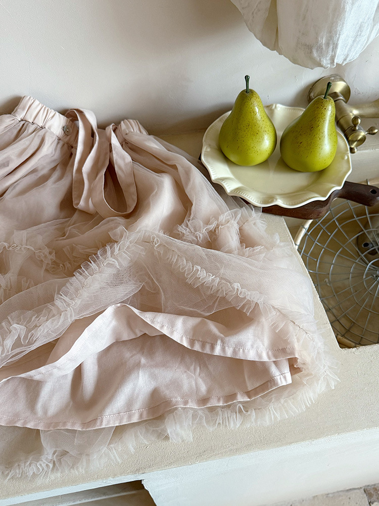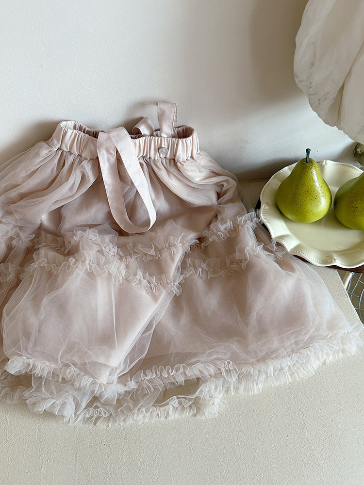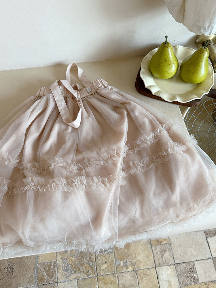 여아용 핑크색 거즈 드레스, 공주 드레스, 휴일 드레스, 사계절 착용 가능한 어린이 스커트, 요정 드레스, 탈부착 가능한 끈