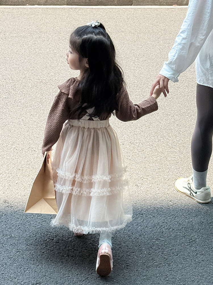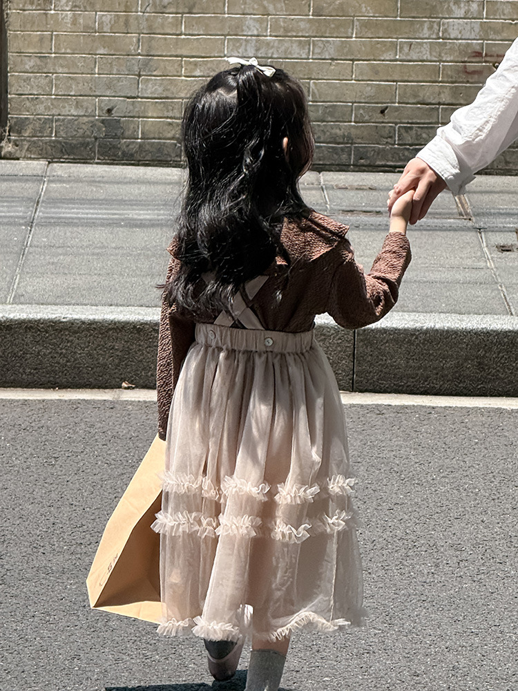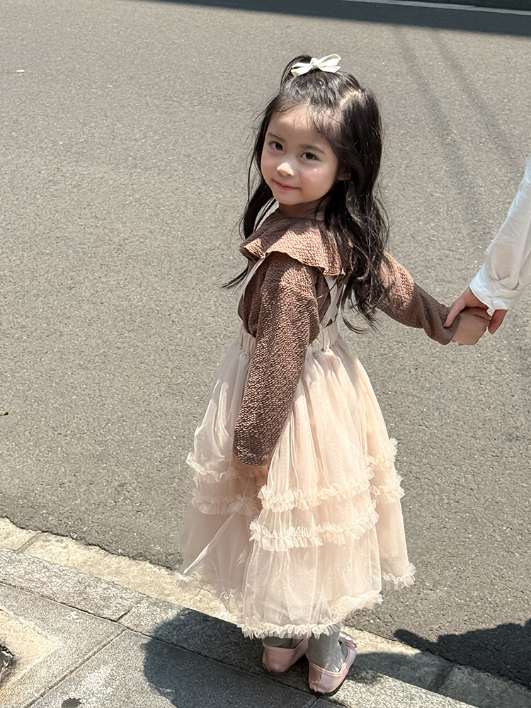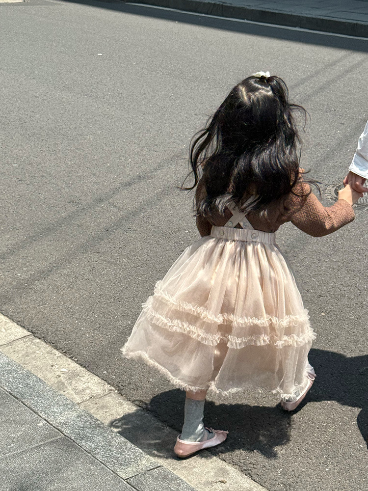 여아용 핑크색 거즈 드레스, 공주 드레스, 휴일 드레스, 사계절 착용 가능한 어린이 스커트, 요정 드레스, 탈부착 가능한 끈스토어 가기
