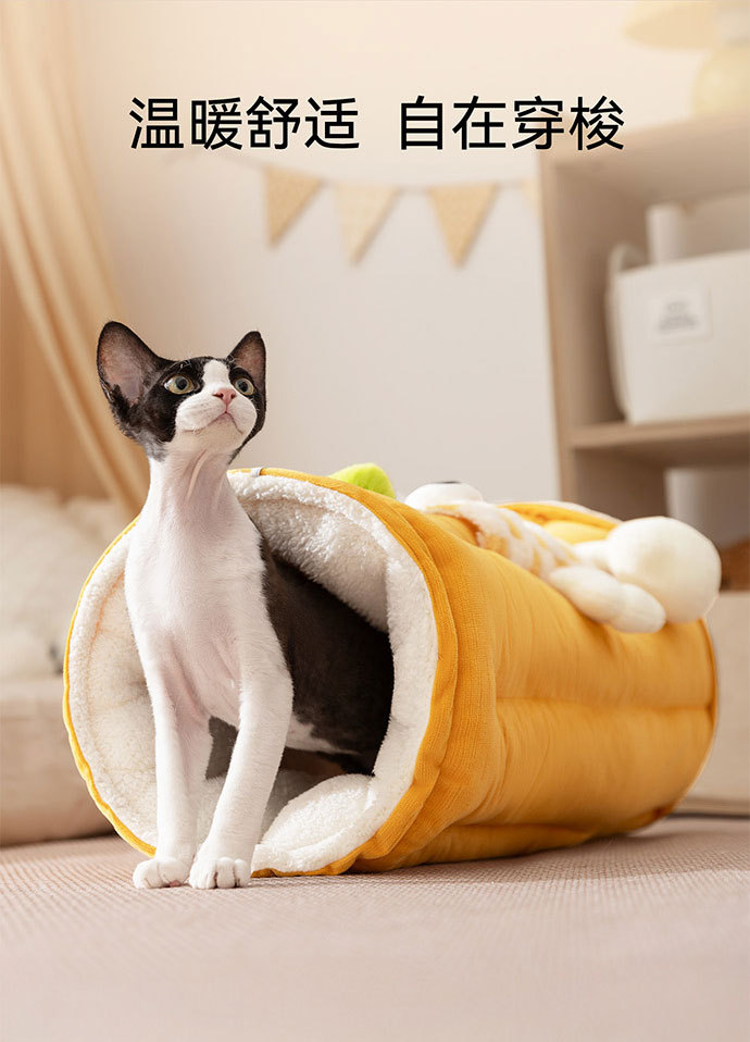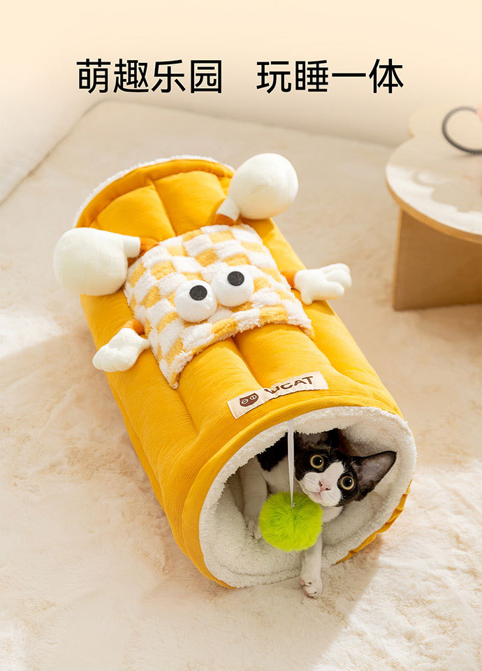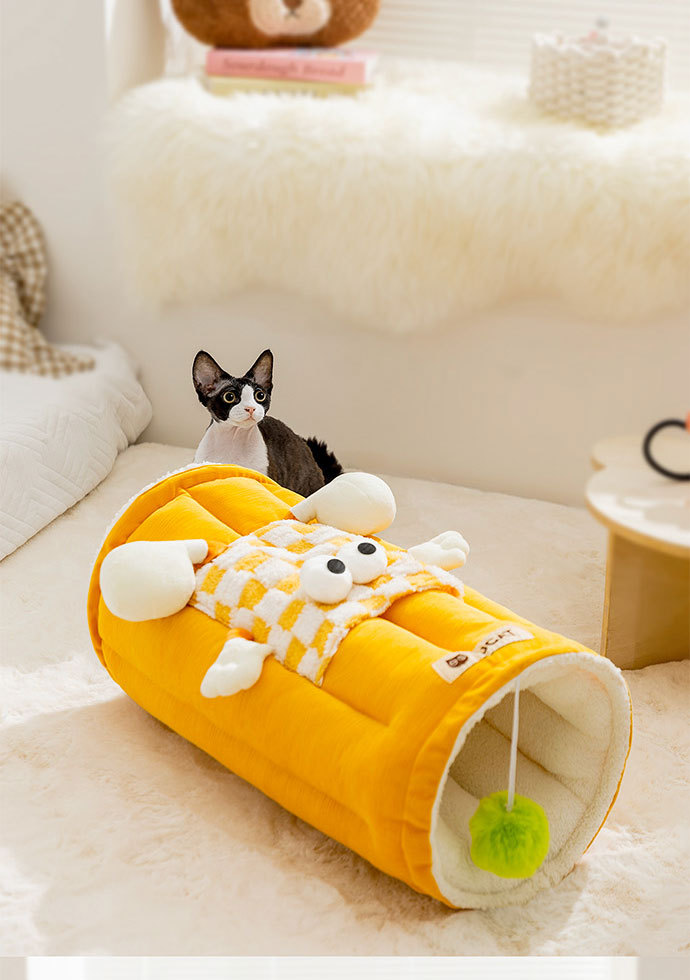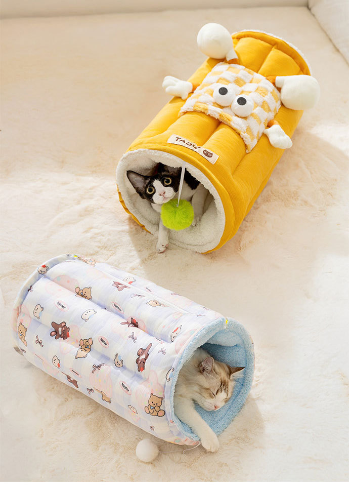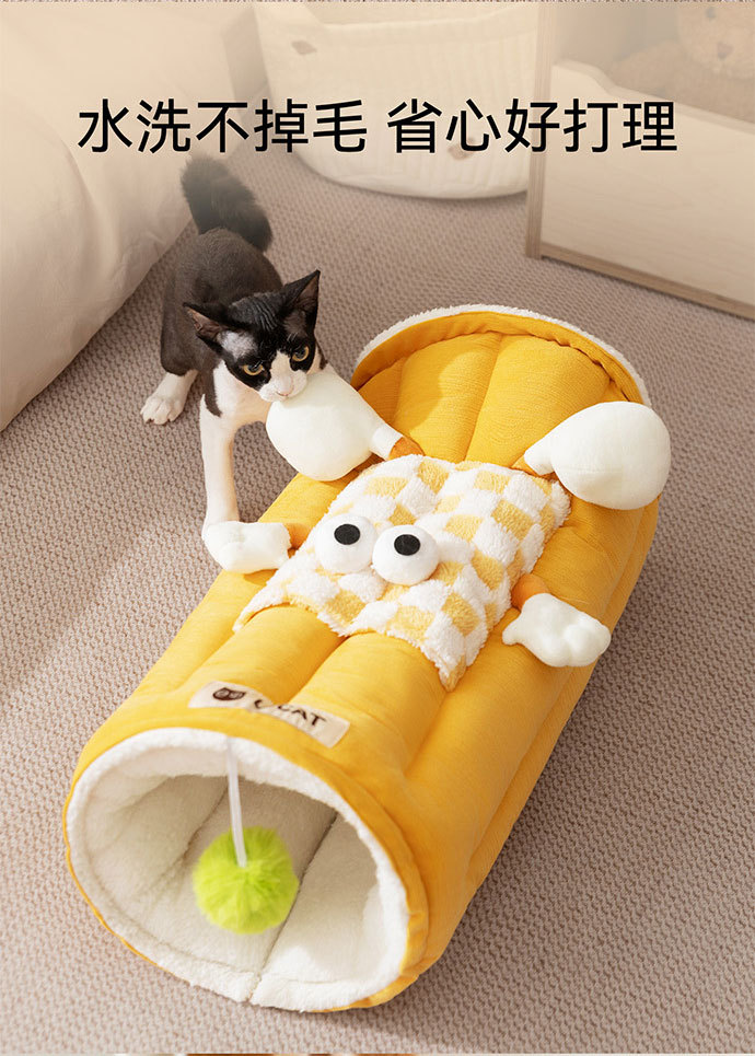 애완 동물 고양이 둥지 터널 둥지 놀이 및 수면 일체형 가을 겨울 두꺼운 고양이 침대 고양이 매트 만화 큰 눈 고양이 터널스토어 가기