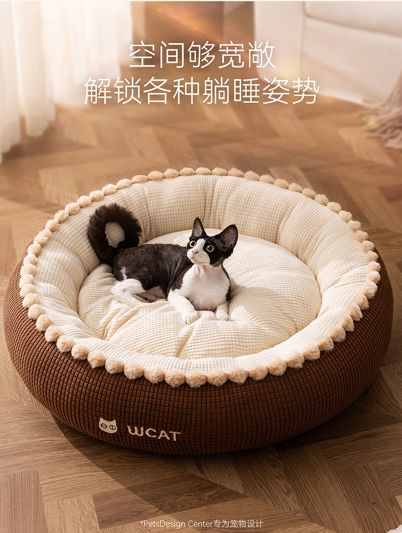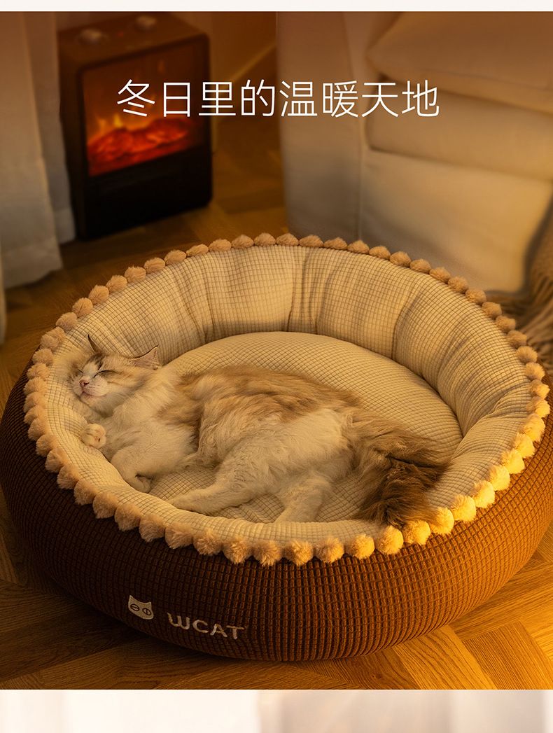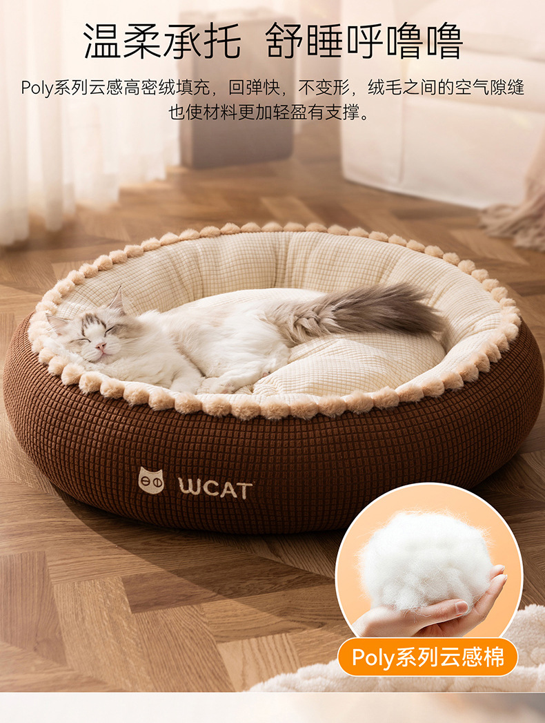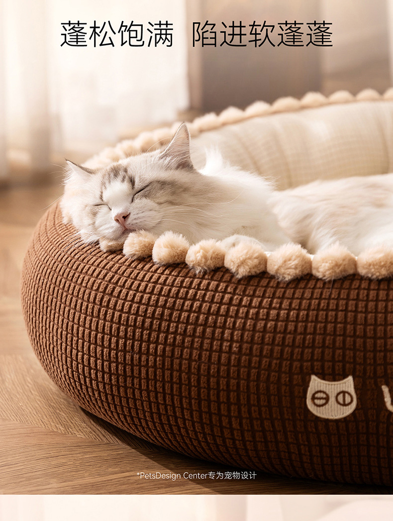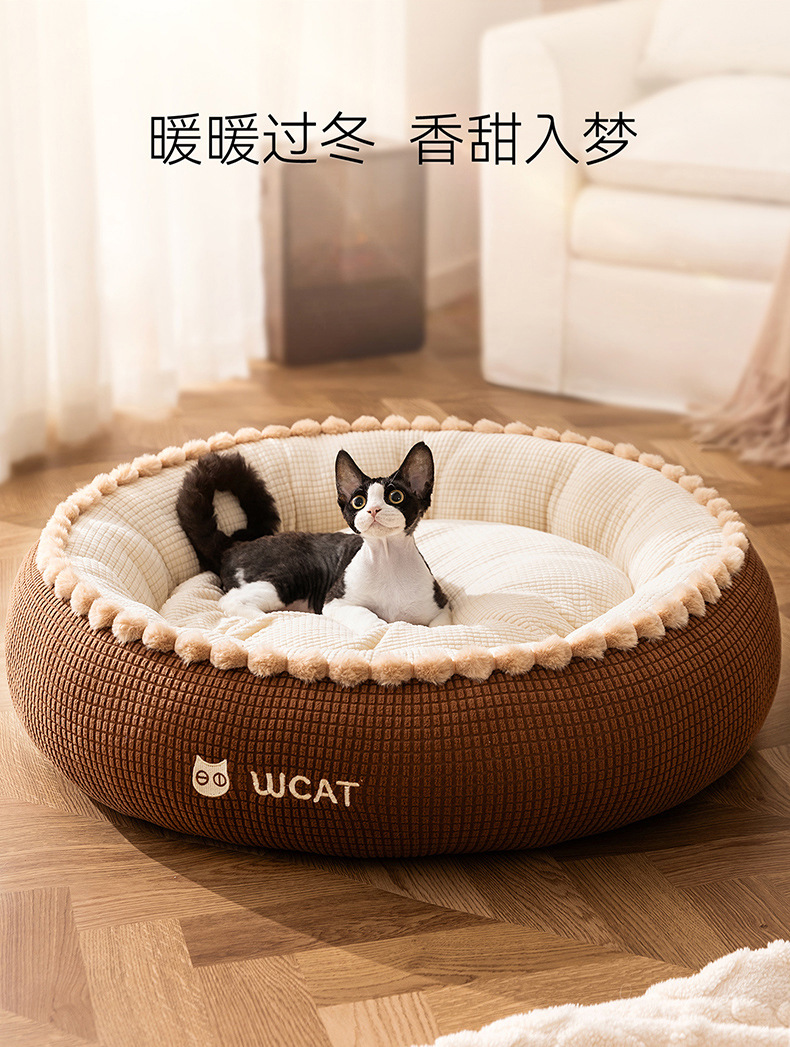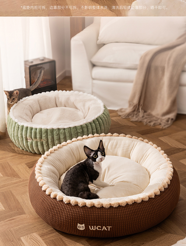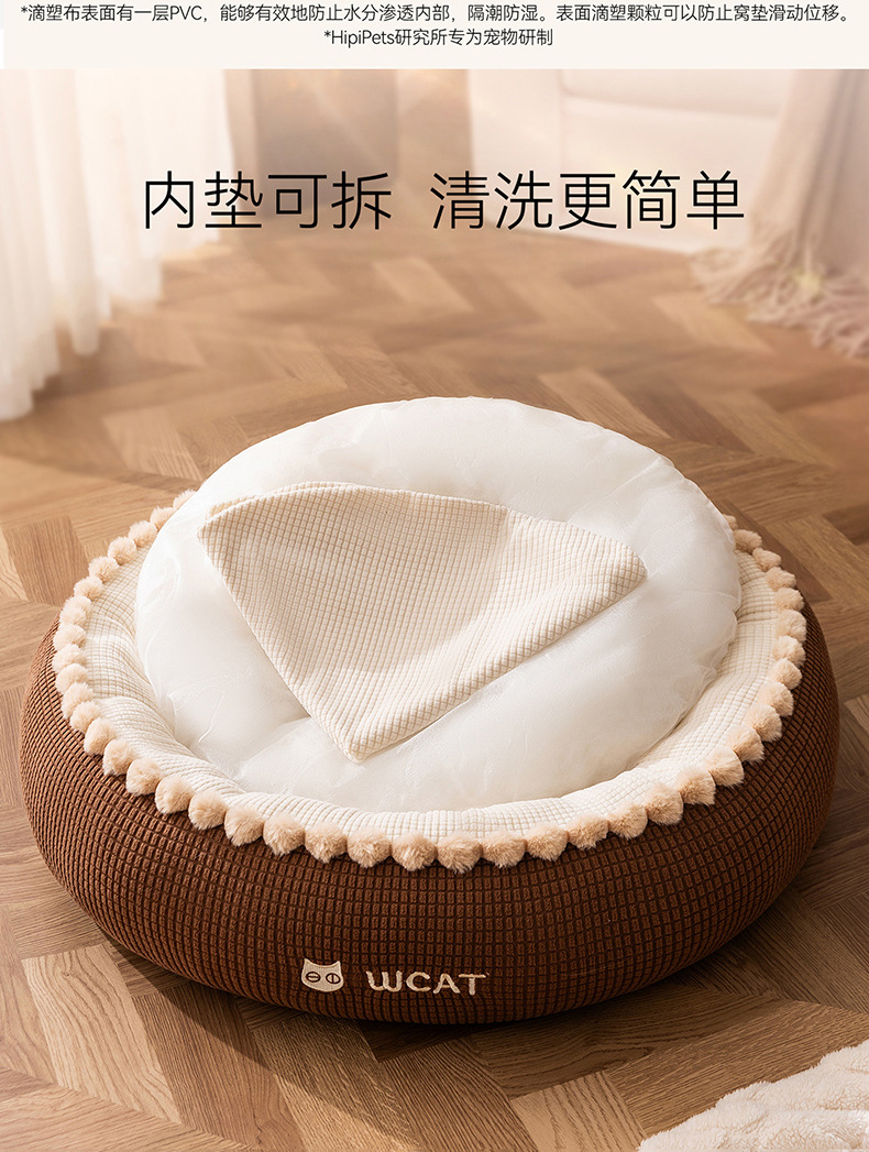 고양이 개집, 가을 겨울 개방형 둥근 개집, 래그돌 고양이 침대, 두껍고 따뜻한 중소형 개 개집, 국경 간 애완 동물 깊은 수면 개집