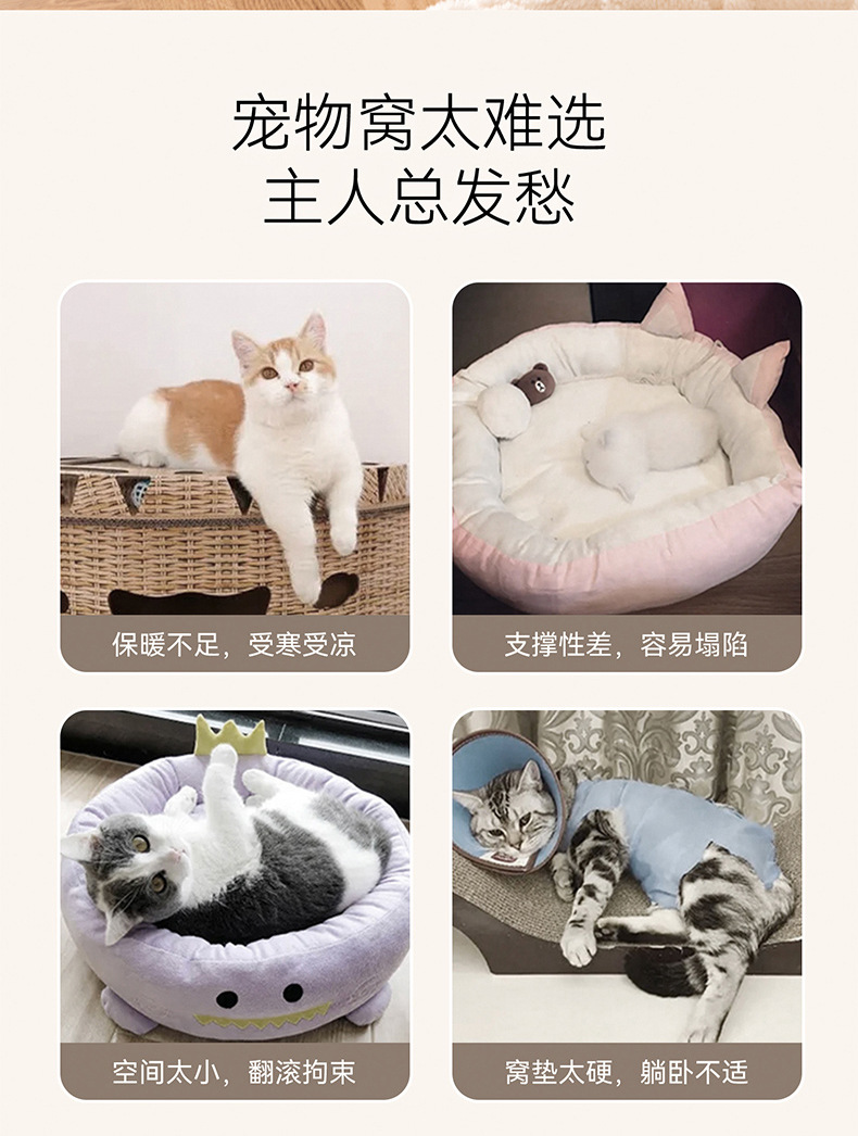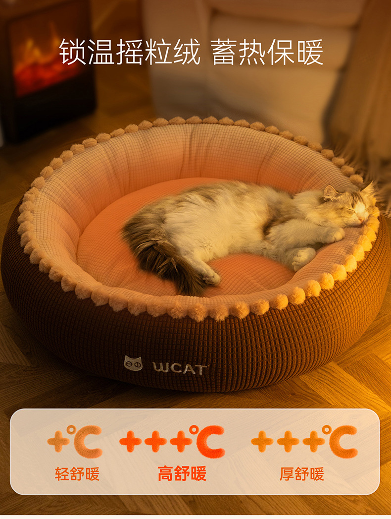 고양이 개집, 가을 겨울 개방형 둥근 개집, 래그돌 고양이 침대, 두껍고 따뜻한 중소형 개 개집, 국경 간 애완 동물 깊은 수면 개집스토어 가기