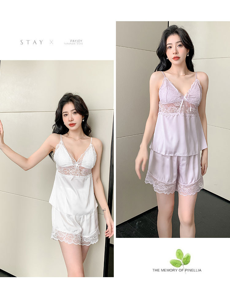 여성용 섹시한 잠옷, 레이스 유혹 멜빵 반바지, 가슴 패드 포함, 모조 실크 소녀 잠옷, 순수한 욕망 홈웨어스토어 가기