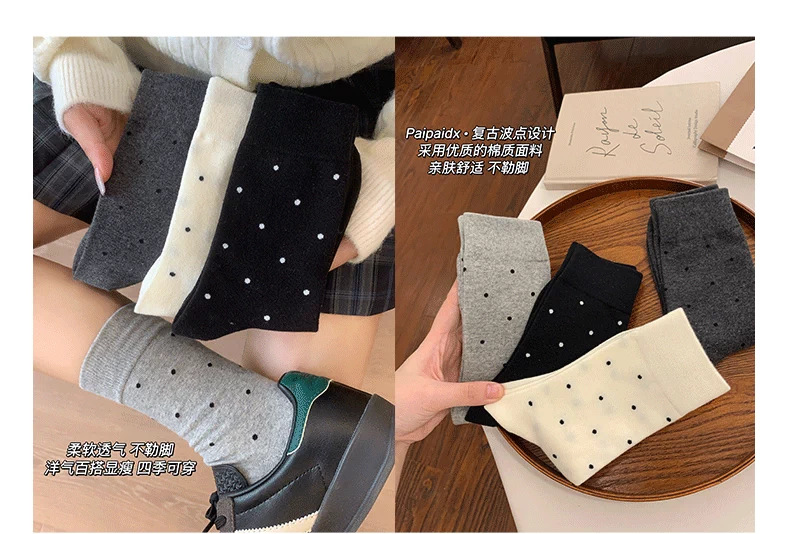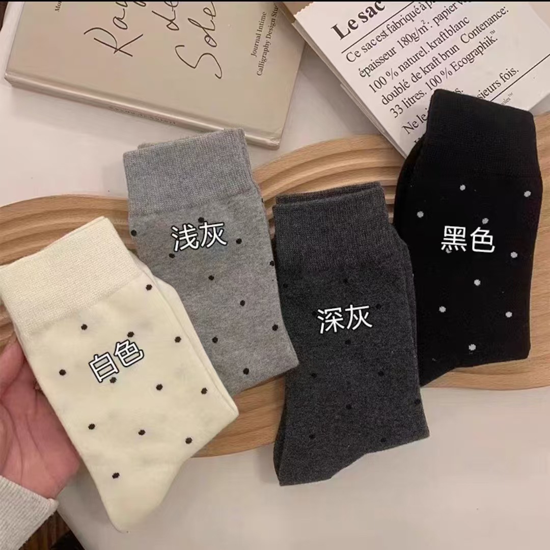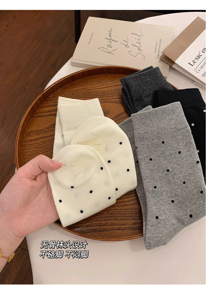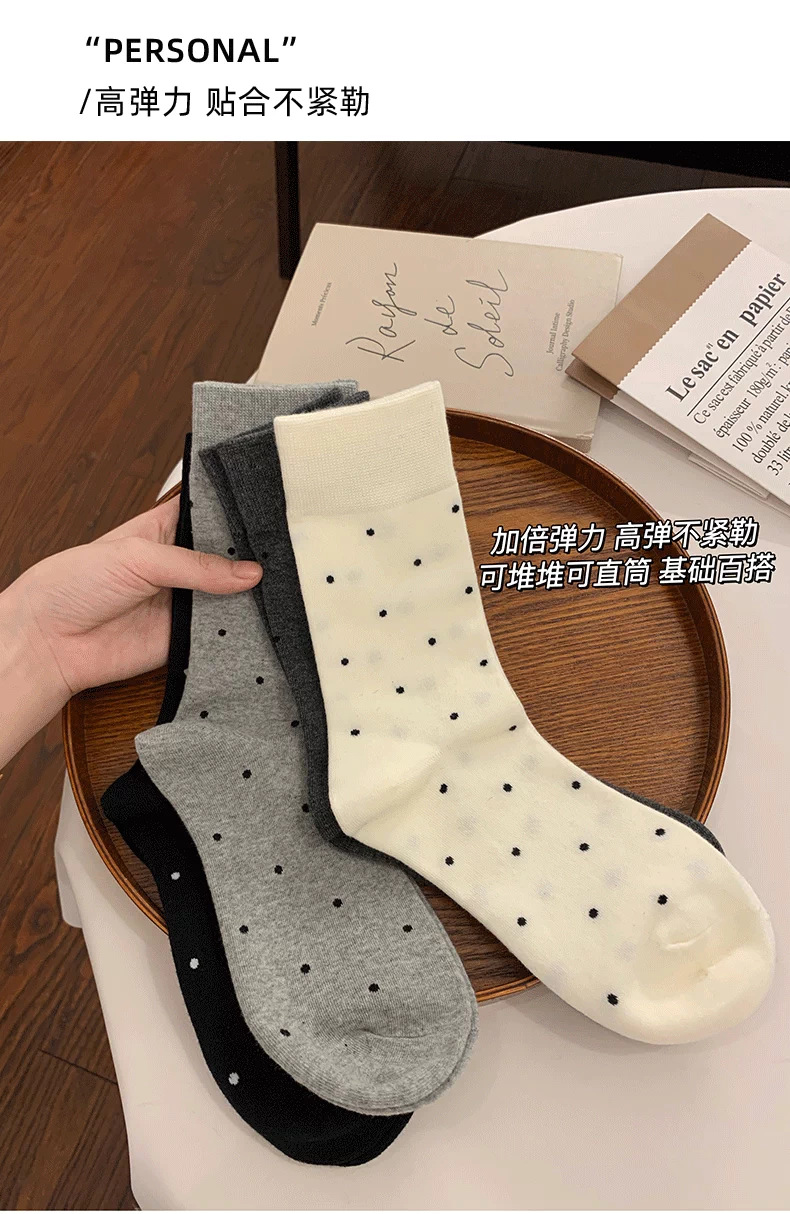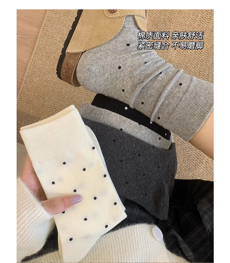 여성용 다용도 양말 2025 봄 가을 신작 인터넷 연예인 폴카 도트 귀여운 긴 양말 다용도 회색 중간 튜브 양말스토어 가기