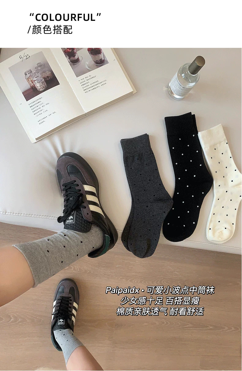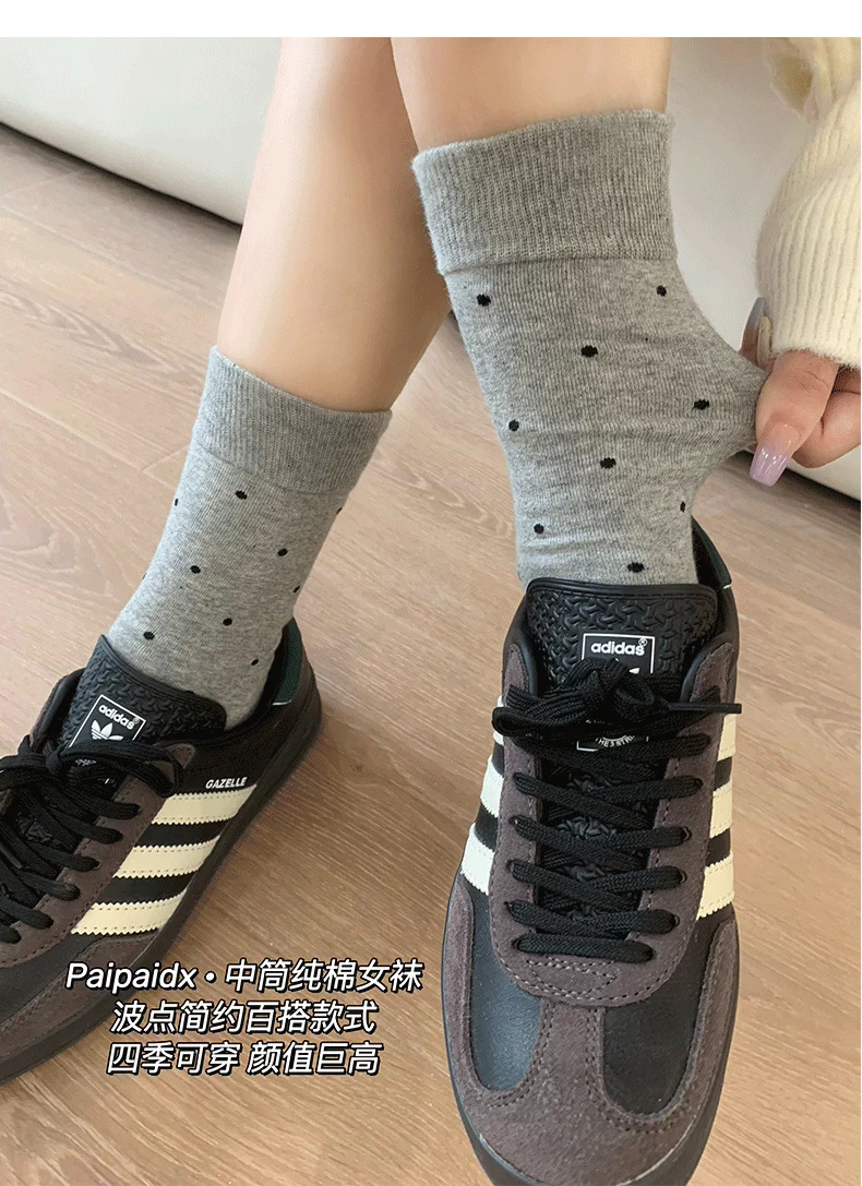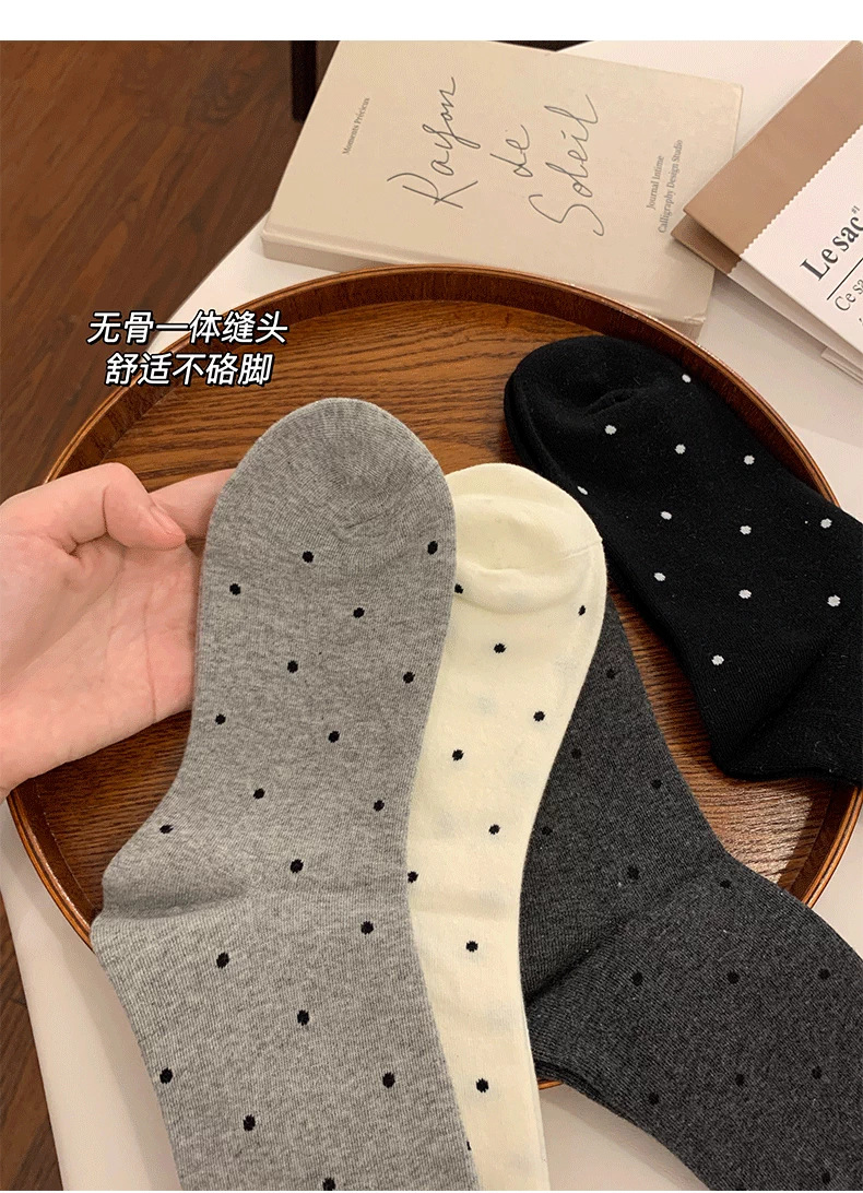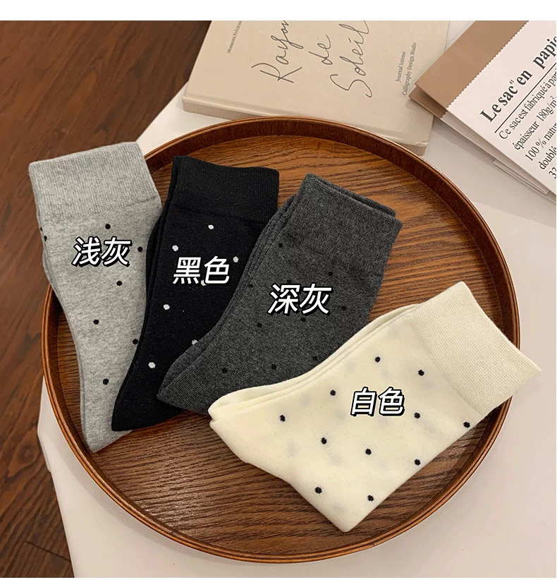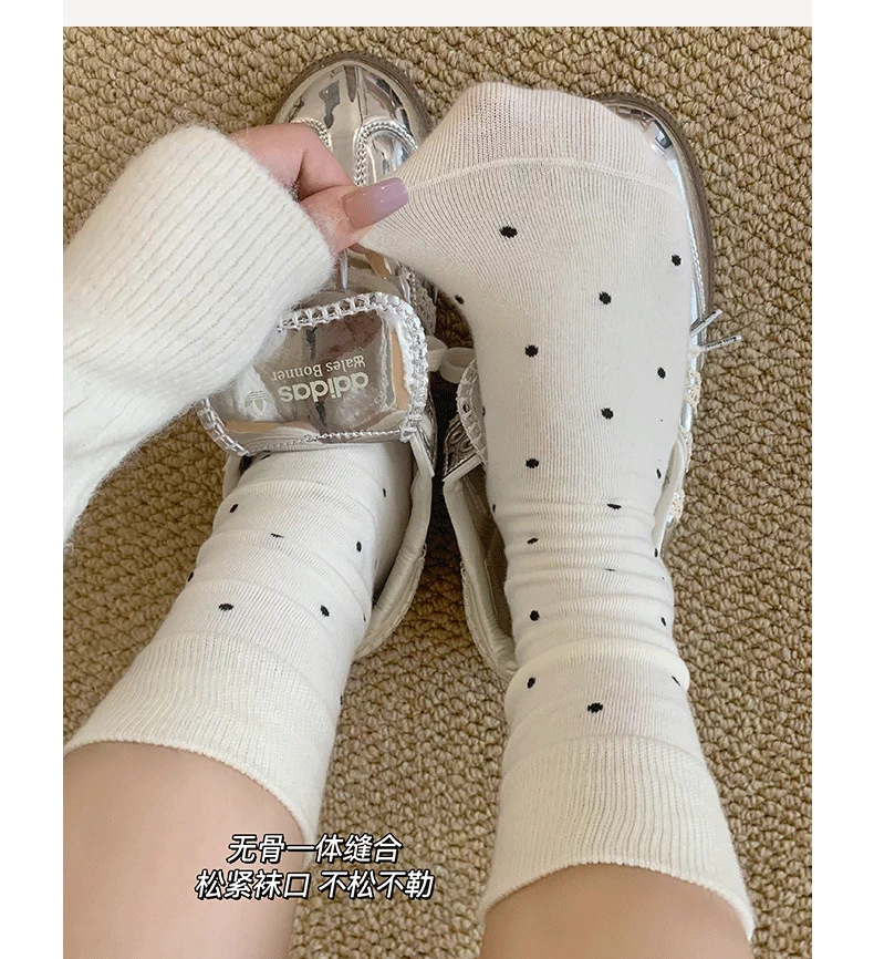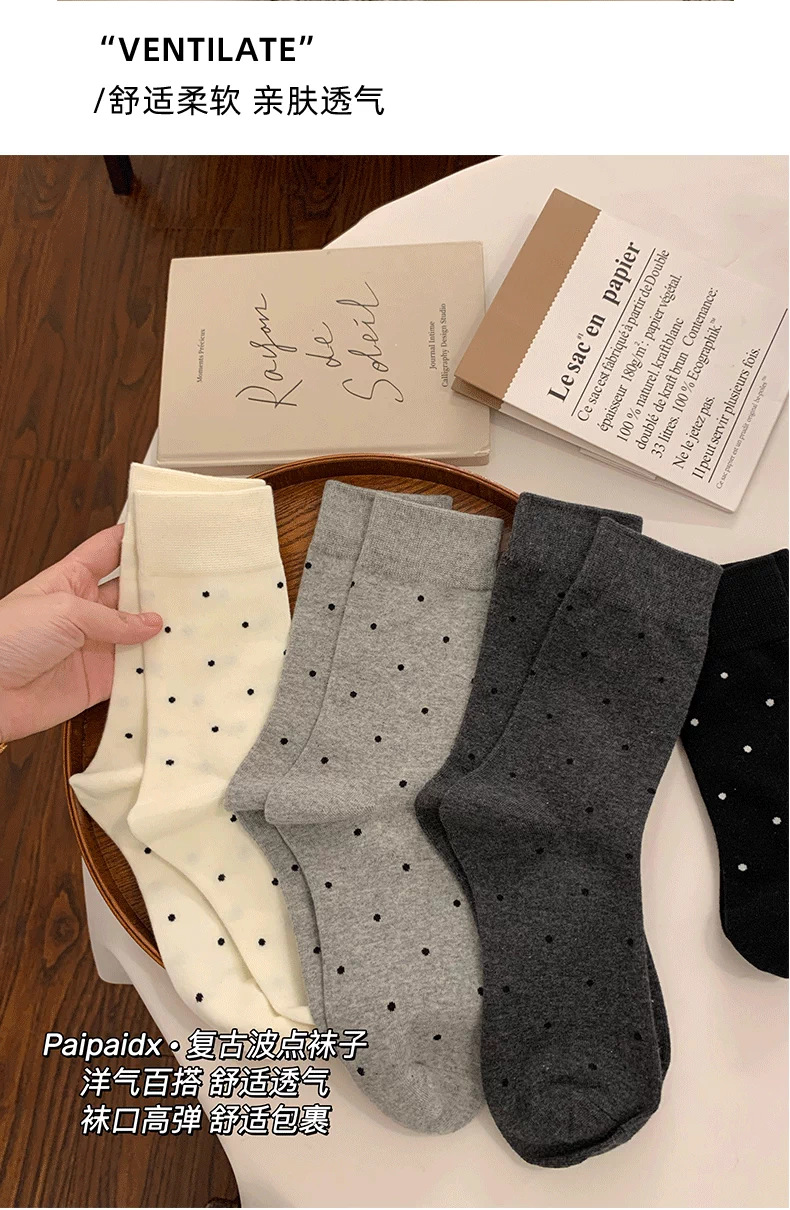여성용 다용도 양말 2025 봄 가을 신작 인터넷 연예인 폴카 도트 귀여운 긴 양말 다용도 회색 중간 튜브 양말스토어 가기