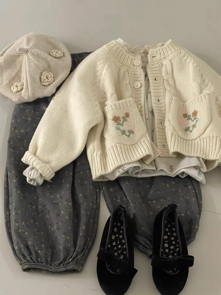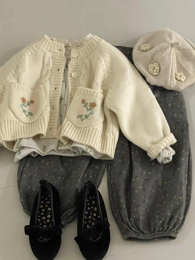 여자 스웨터 니트 가디건 2025 가을 새로운 한국 스타일 베이비 스타일 울 탑 어린이 가을 재킷