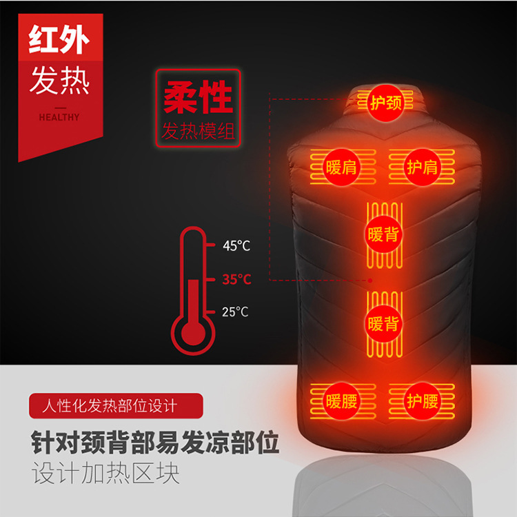국경 간 9 지역 가열 조끼 지능형 항온 가열 조끼 남성용 전기 가열 따뜻한 가열 의류 전신 가열 조끼스토어 가기
