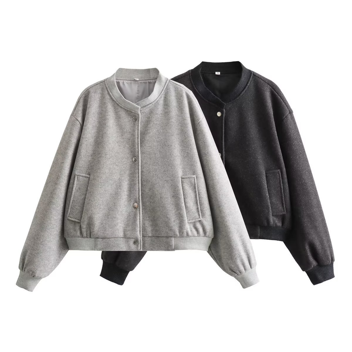 국경 간 여성 의류 도매 2025 가을, 겨울 새로운 여성 캐주얼 긴 소매 부드러운 짧은 폭격기 재킷스토어 가기