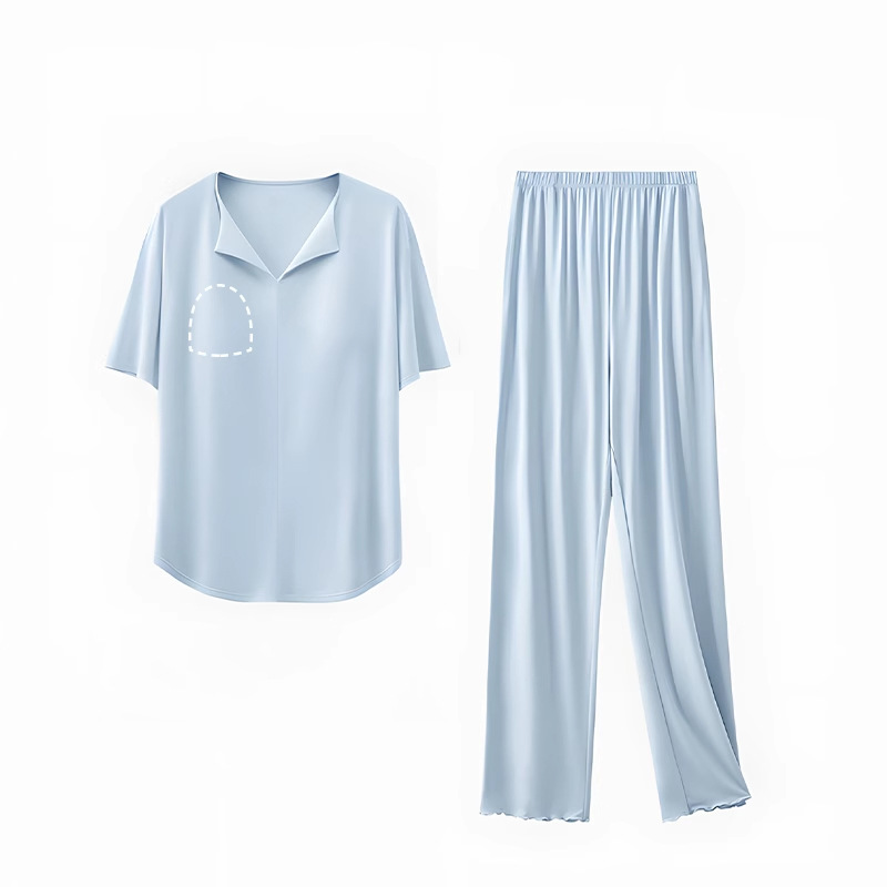 가슴 패드가 있는 여성용 라이오셀 잠옷, 텐셀 시원한 여름용 얇은 반팔 긴바지, 여성용 고급 홈웨어 세트스토어 가기