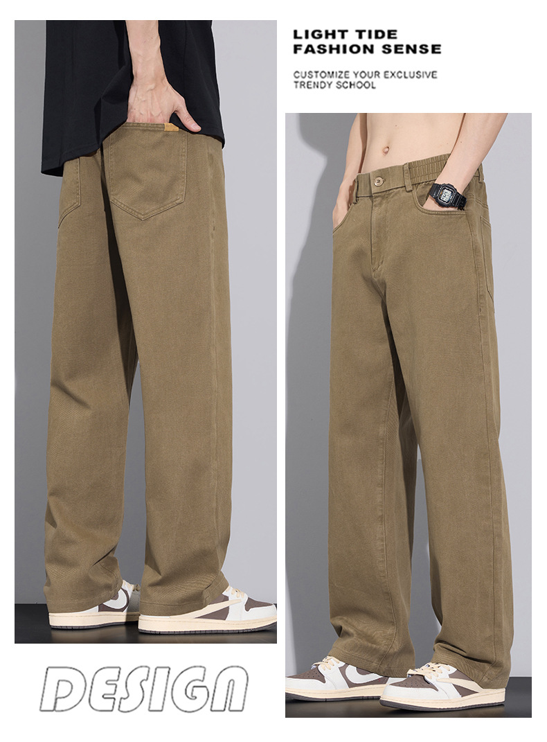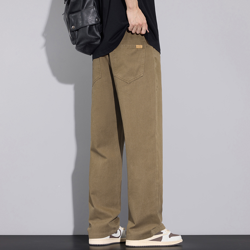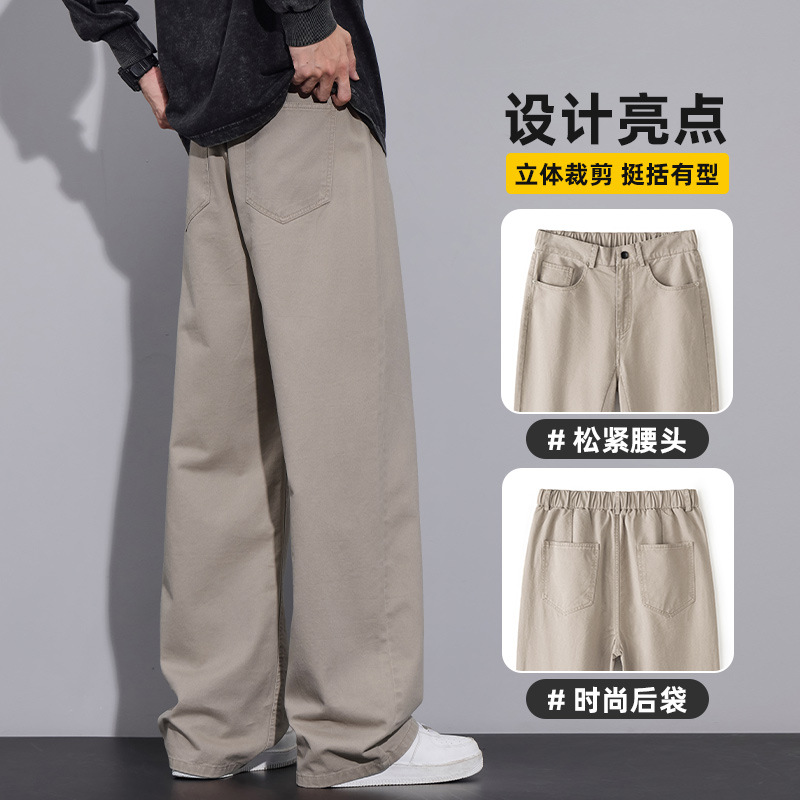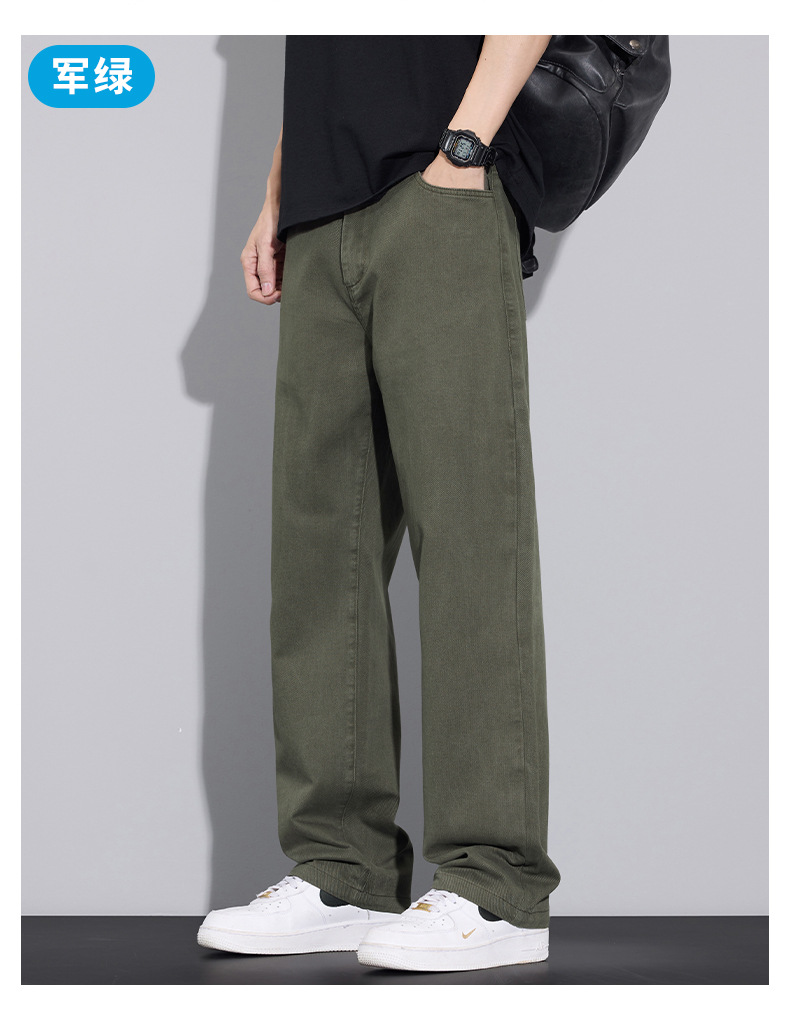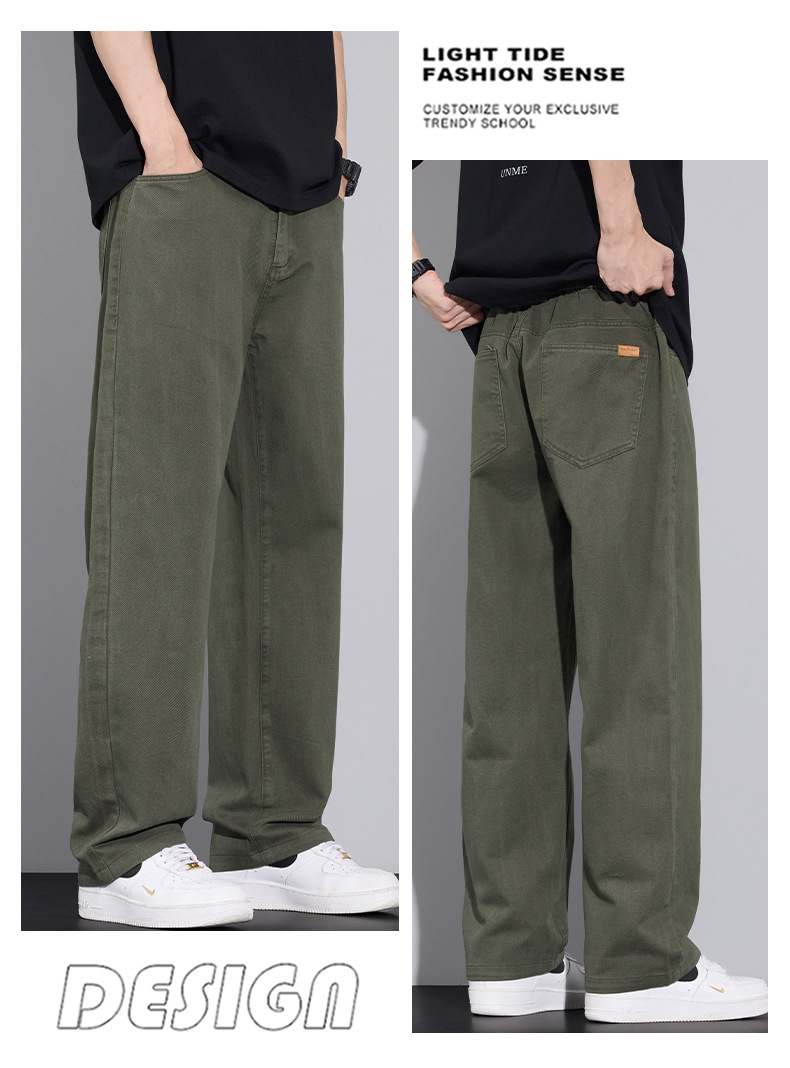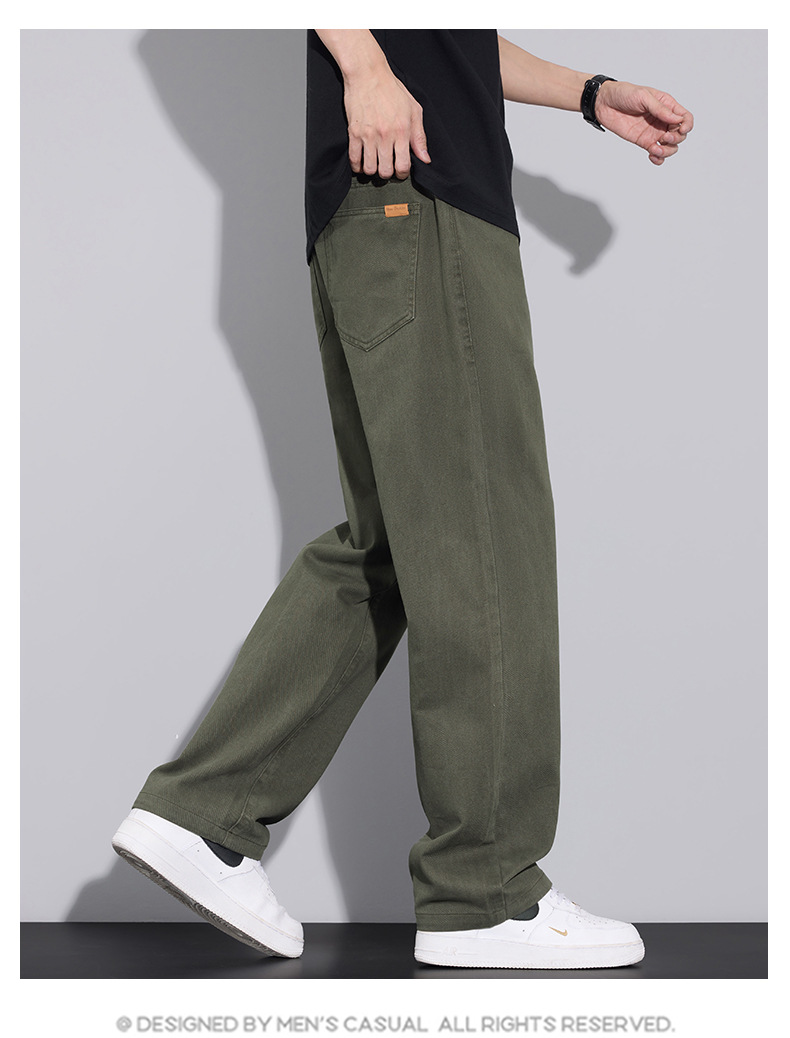 2025년 가을 겨울 남성용 아메리칸 캐주얼 팬츠, 군녹색 순면 스트레이트 팬츠, 남성용 루즈핏 와이드 레그 캐주얼 바지스토어 가기