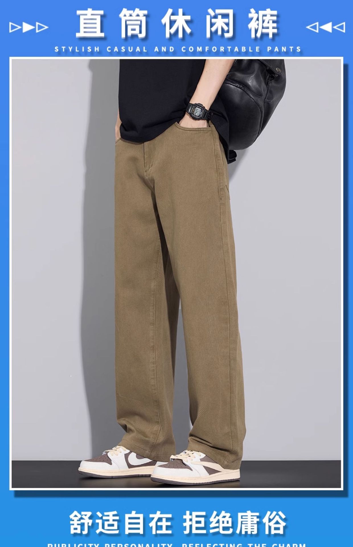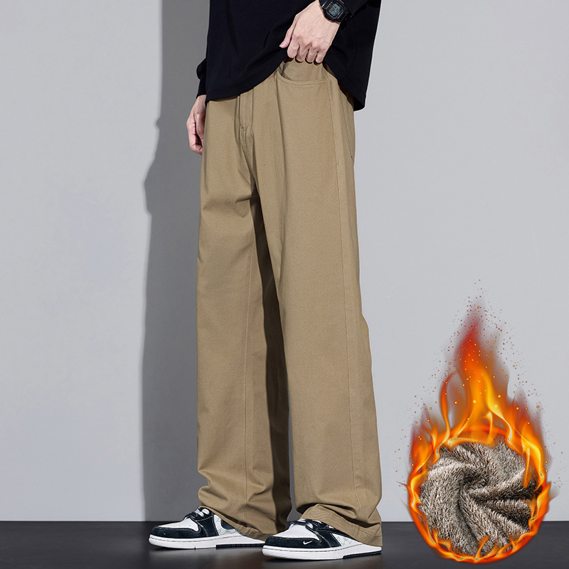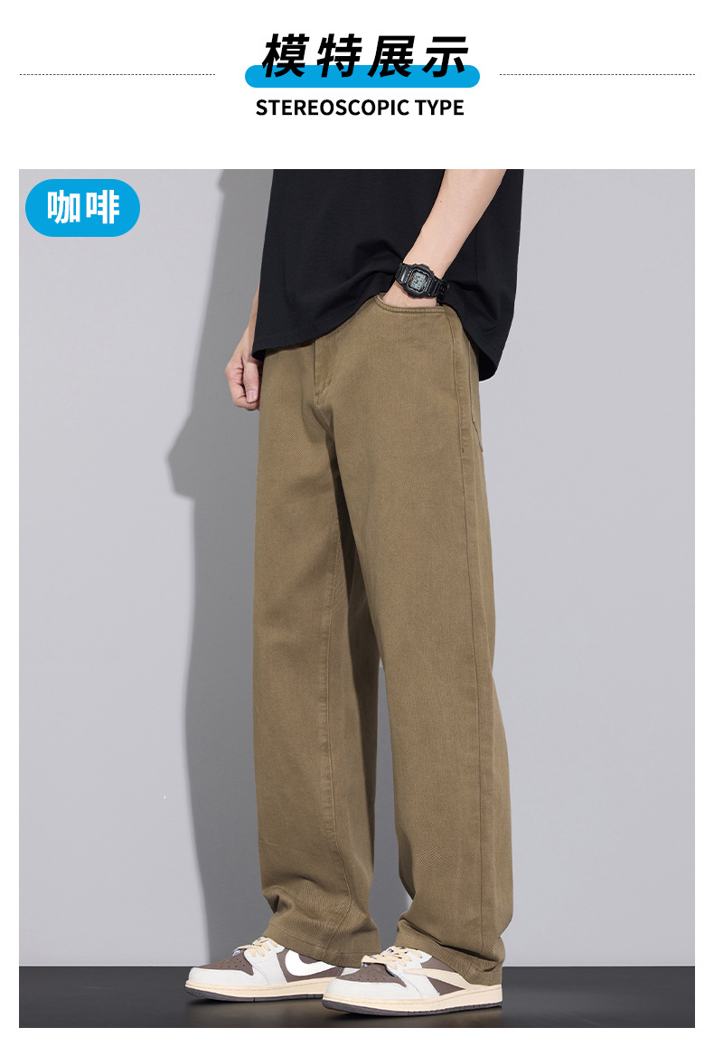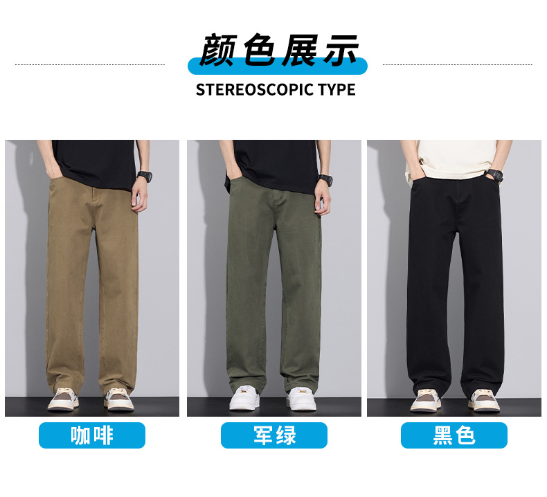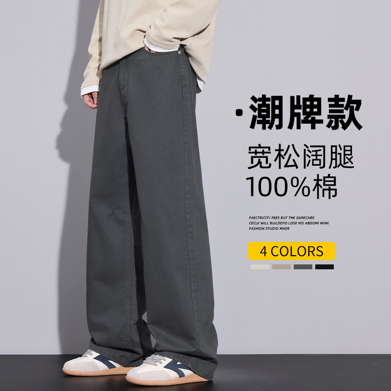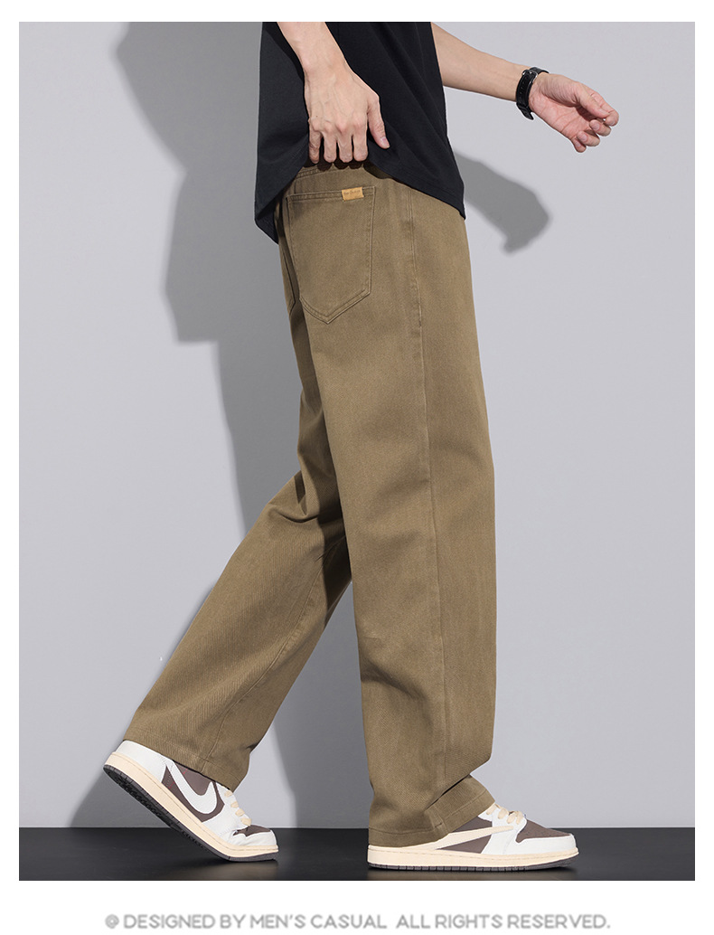 2025년 가을 겨울 남성용 아메리칸 캐주얼 팬츠, 군녹색 순면 스트레이트 팬츠, 남성용 루즈핏 와이드 레그 캐주얼 바지스토어 가기