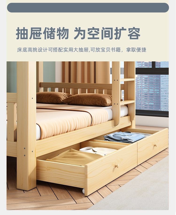 심플 모던 이층침대 원목 이층침대 두꺼운 하이앤로우 침대 이층침대 기숙사 성인 이층침대 어린이침대스토어 가기