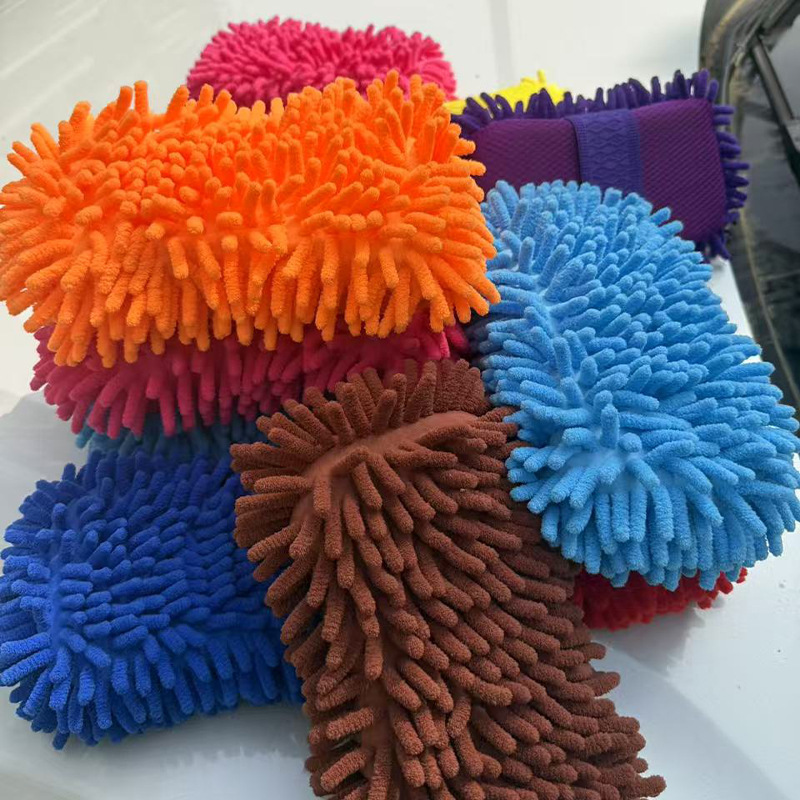차량 닦기용 천셀러 세차 장갑, 부드러운 긴 털 양면 긴 털 두꺼운 차량 먼지 제거 도구